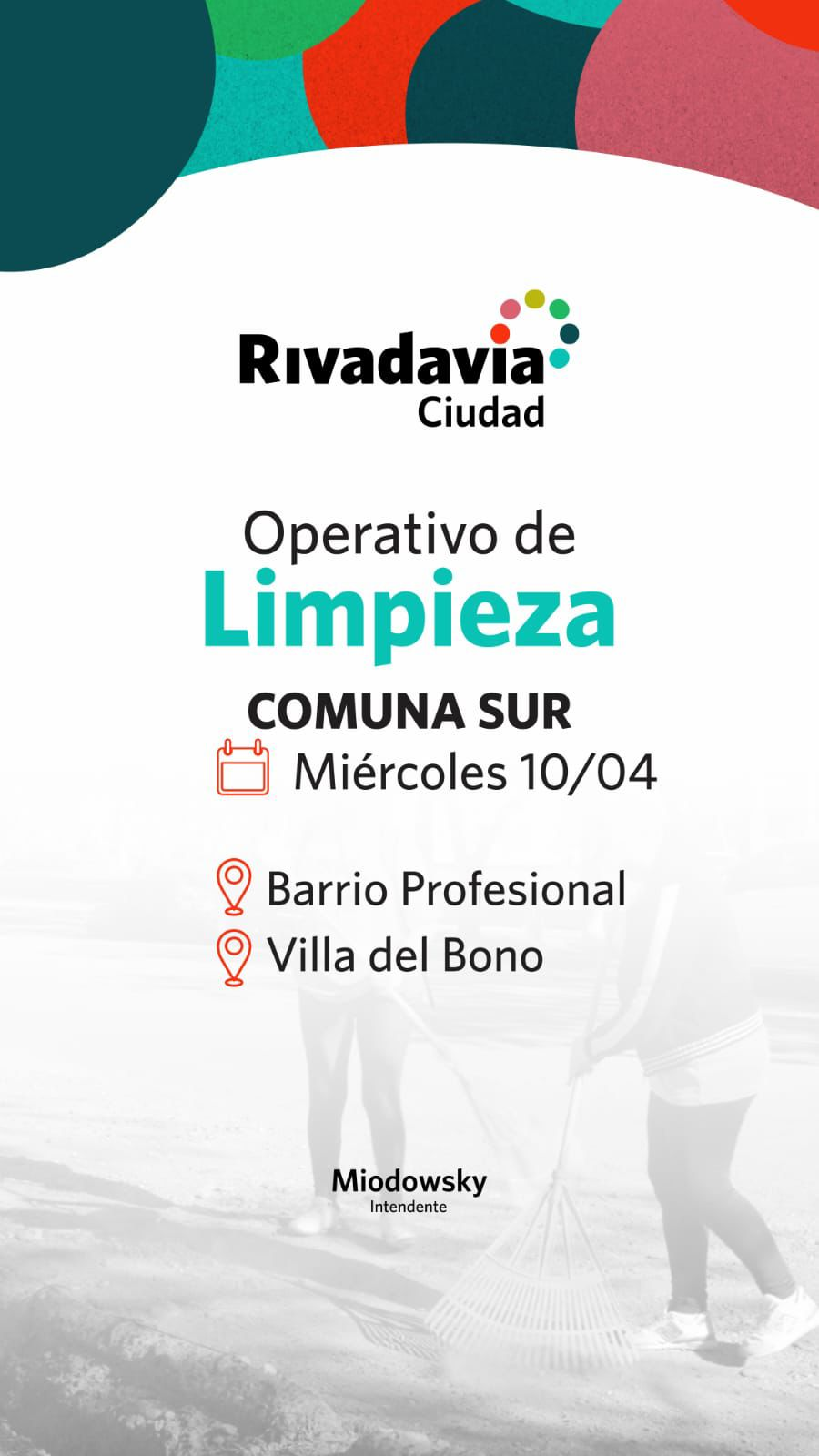 Por otro lado, se llevará adelante un operativo especial de limpieza en la comuna Sur este miércoles 10 de abril en el barrio Profesional y la villa Del Bono y otro en la comuna Marquesado el jueves 11 del corriente en los barrios Marquesado 1, 22 de abril y Zorzales.
