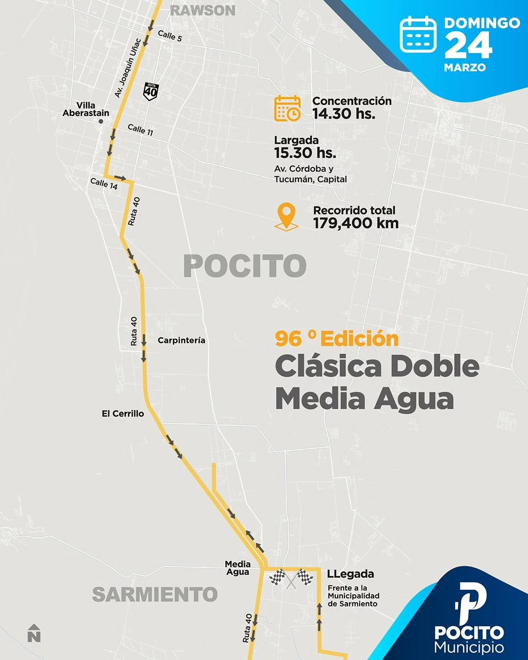 POCITO 96° Edición de la Clásica Doble Media Agua EL REPORTERO 24 de marzo de 2024 Este domingo 24 de marzo, se realiza la 96° Edición de la Clásica Doble Media Agua, donde los ciclistas recorrerán calles del departamento. La largada será a las 15:30hs en Avenida Córdoba y Tucumán, en Capital. Navegación de entradas Anterior: ¡A sumarse a las clases de Robótica!Siguiente: Feria de Artesanos y Emprendedores Más historias POCITO Los primeros pasos en el mundo laboral EL REPORTERO 28 de agosto de 2025 DESTACADO POCITO Muestra fotográfica «Gloria, Honor y Gratitud» EL REPORTERO 27 de agosto de 2025 POCITO Seguimos apostando por un Pocito + Limpio EL REPORTERO 18 de agosto de 2025