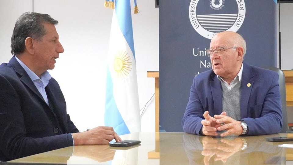 El Intendente Fabian Aballay, junto al rector de la Universidad Nacional de San Juan, Tadeo Berenguer, firmaron un convenio entre ambas instituciones el cual tiene por objetivo desarrollar experiencias en el marco del programa Cultura Comunitaria.
