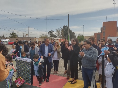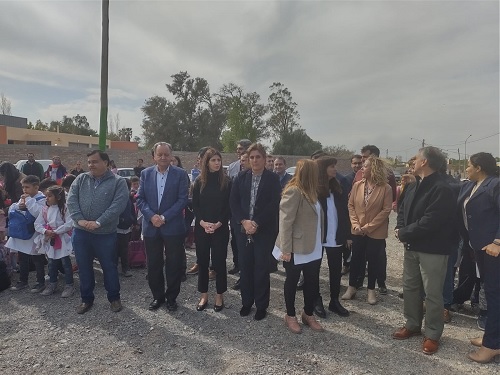 El intendente del departamento de Pocito, en la provincia de San Juan, Armando Sánchez, acompañado por directivos de Grupo Arcor y Fundación Arcor; secretarios municipales; diputados departamentales y proporcionales; miembros