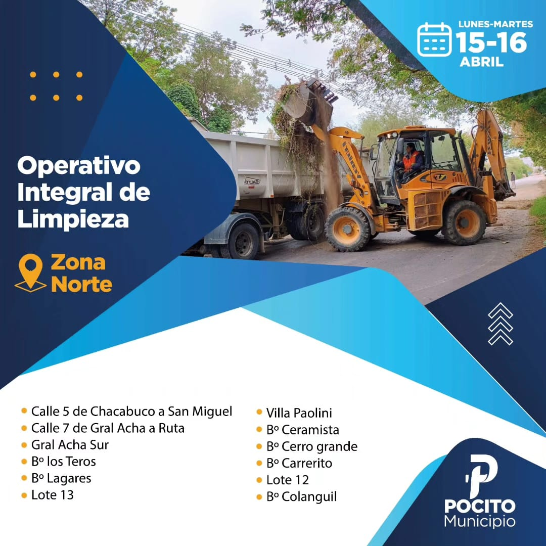 Este lunes 15 y martes 16 de abril, el Operativo Integral de Limpieza, Recolección de Verdes y Bolsas y Desmalezamiento de Plazas y Banquinas, estarán recorriendo diferentes puntos de Zona Norte.