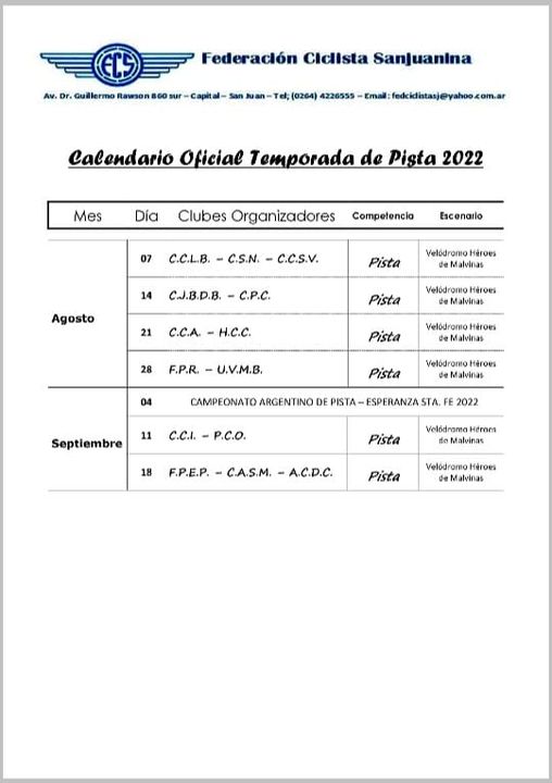 CICLISMO Calendario de Temporada de Pista 2022 en San Juan EDITOR 13 de julio de 2022 Navegación de entradas Anterior: Manifestantes tomaron las oficinas del primer ministro de Sri Lanka que había sido nombrado presidente interinoSiguiente: Tour de Francia Más historias CICLISMO Selección Sanjuanina se destacó en el Campeonato Argentino de ciclismo en ruta 2026 EDITOR 19 de abril de 2026 CICLISMO Vuelta a San Juan Damas 2026: información del Prólogo EDITOR 3 de marzo de 2026 CICLISMO Tomás Contte es el nuevo líder de la Vuelta a San Juan EL REPORTERO 28 de enero de 2026