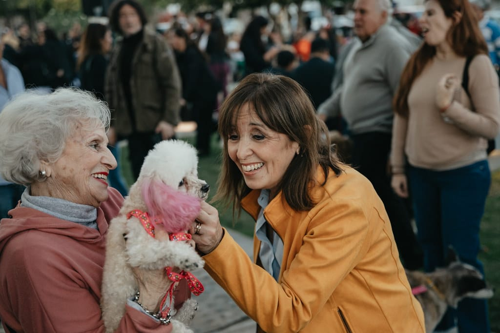 La intendente de la Ciudad de San Juan, Susana Laciar, se sumó a la actividad como una vecina más, acompañada por sus mascotas, y expresó su satisfacción por la convocatoria, destacando el amor y la lealtad que los animales brindan a sus familias.