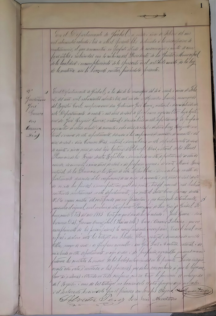 «…comparecieron don Justiniano Guerra, natural y domiciliado en este departamento, de veintiséis años de edad…»