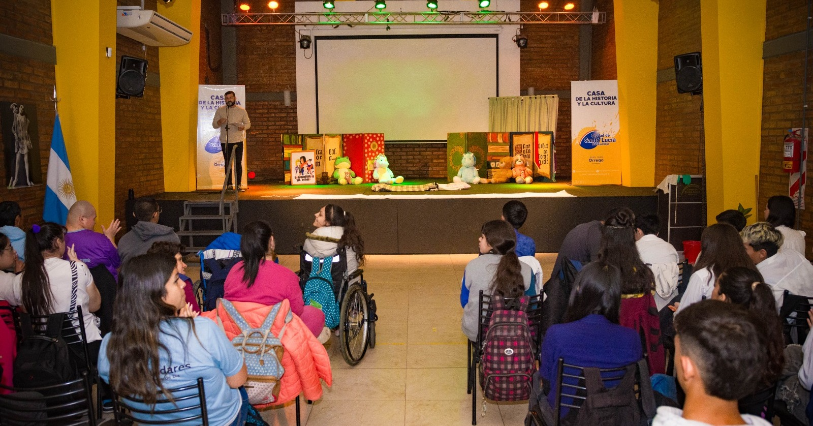 Participé de la muestra del Cierre de Actividades ARID. Los chicos de la Escuela de Educación Especial Aleluya, anexo Centro de Formación Social y Laboral, Vida Nueva, llevan adelante talleres de teatro en las instalaciones de la Casa de la Cultura, en nuestro departamento, manifestó el intendente de Santa Lucía, Juan José Orrego.