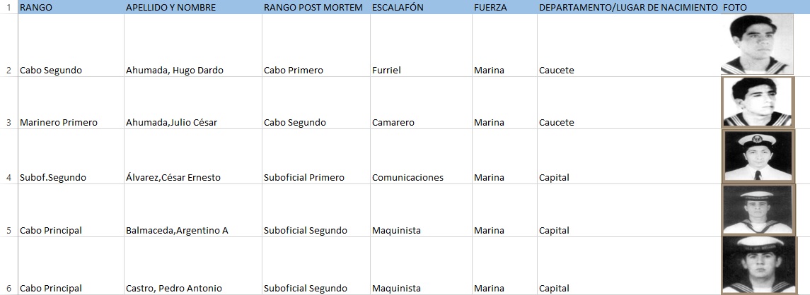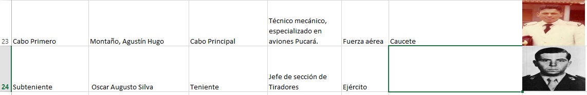 Tiene dos jerarquías más que su padre, Pablo fallece como Suboficial Segundo, lo ascienden Post Mortem un grado más a Suboficial Primero.