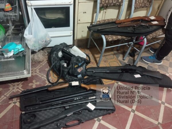 Personal policial de Unidad Rural Nº 1, ejecutó una serie de mandatos judiciales, a raíz de una denuncia realizada por personal de Áreas Protegidas de la Secretaría de Estado Ambiente y Desarrollo Sustentable por daño agravado y amenazas por coacción con intervención del SEGUNDO JUZGADO DE INSTRUCCIÓN, donde en primera instancia se realizó un allanamiento en calle Belgrano y Urquiza , Villa del Carril, se logró la detención del BRIZUELA MARIO, mayor de edad, y el secuestro de trece armas (entre cortas y largas) con la documentación de ANMAC vencida y una escopeta doble cañón calibre 16 sin documentación legítima. Se dio intervención al procedimiento especial de flagrancia por Inf. Art. 189° Bis del C.P.A.