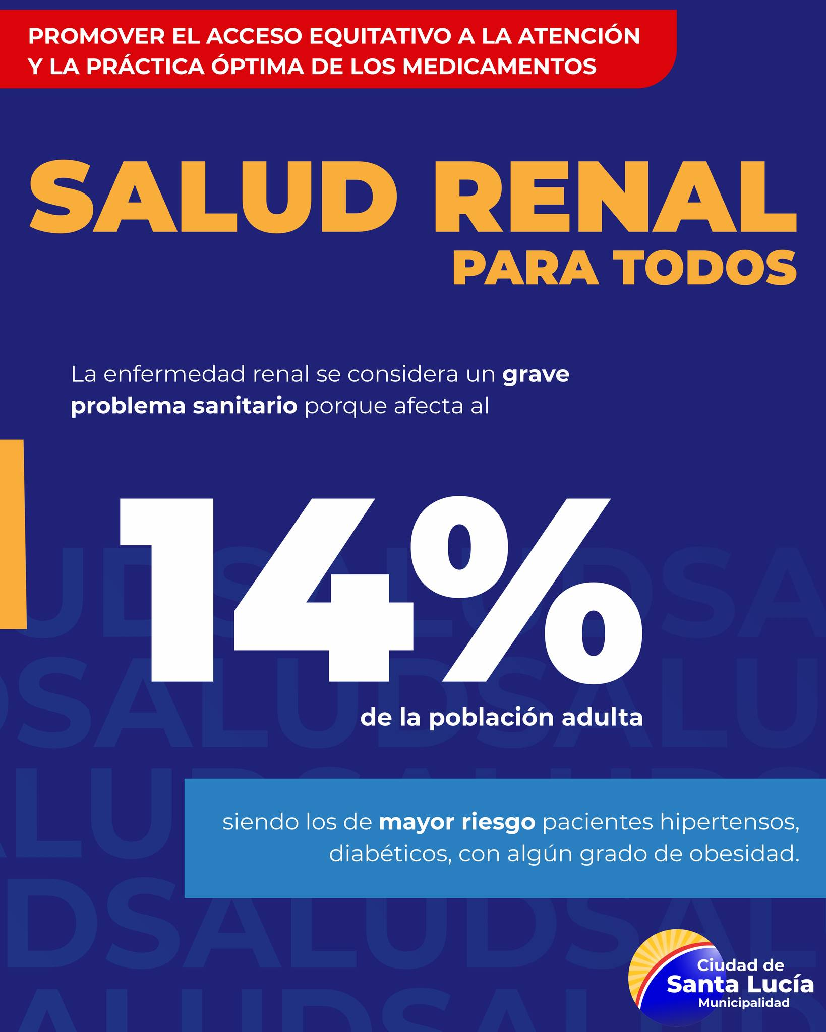 La enfermedad renal afecta al 14% de la población adulta, y los pacientes que sufren hipertensión, diabetes y obesidad están en mayor riesgo, el objetivo es Promover el Acceso Equitativo a la Atención y la Práctica Óptima de los Medicamentos. ![]()
