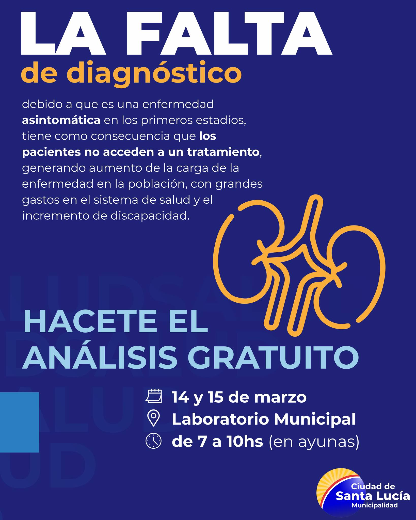Estaremos realizando análisis de sangre gratuitos y sin necesidad de orden médica para el control renal.