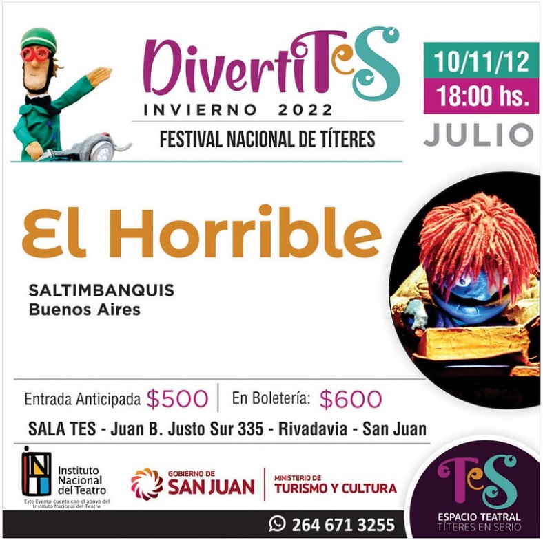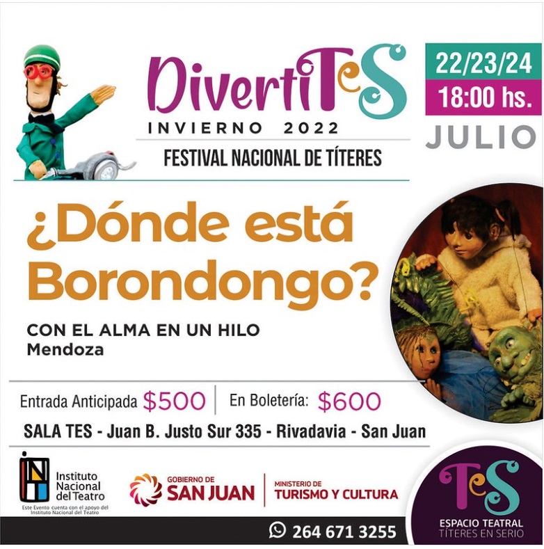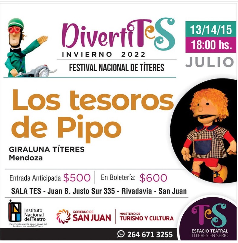 «DivertiTes», este ciclo de vacaciones de invierno es la oportunidad de disfrutar con toda la familia de la magia que ofrece el Espacio Teatral Títeres en Serio (Juan B. Justo 335 Sur, Rivadavia, entre Ituzaingó y Reconquista).