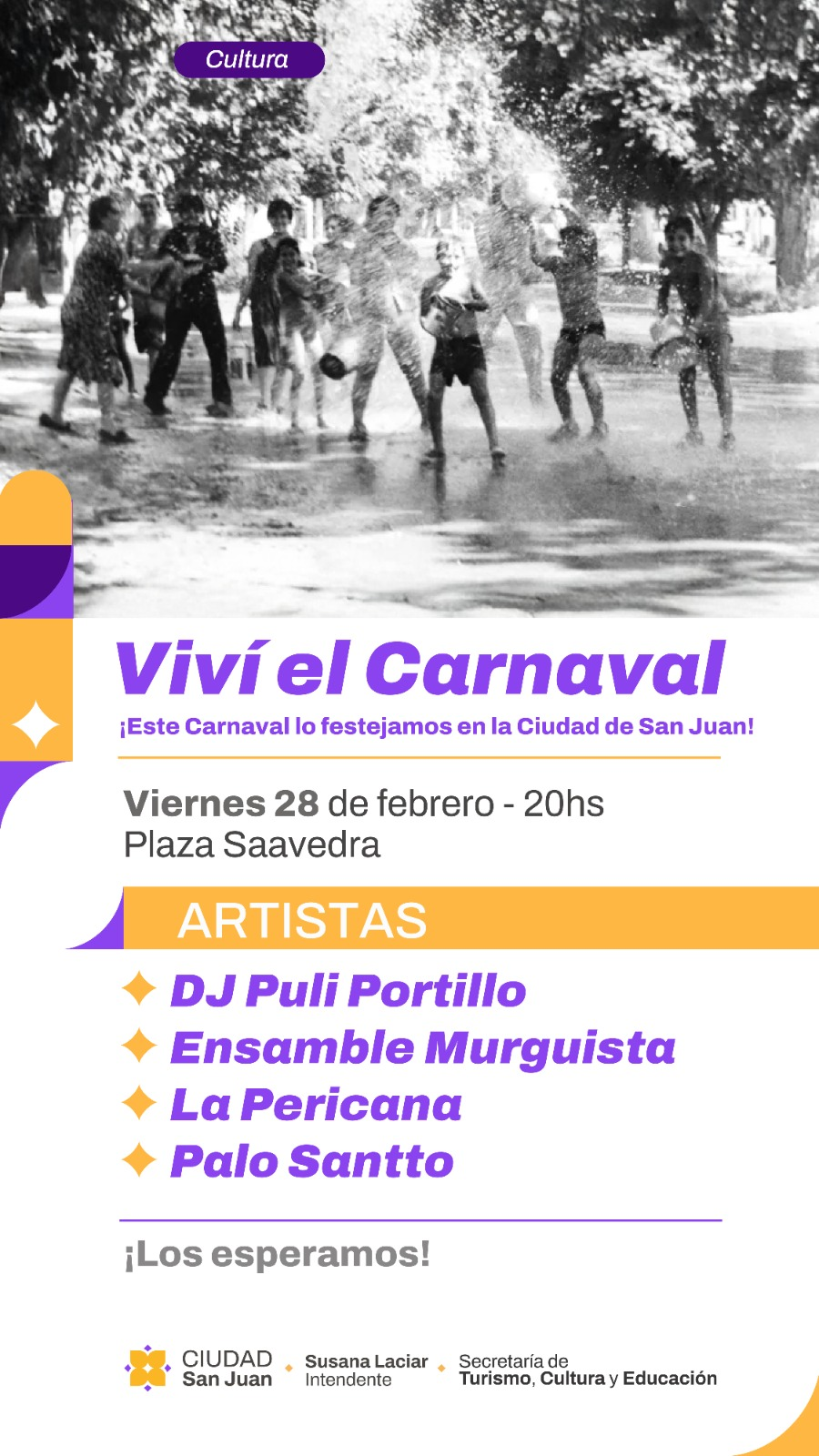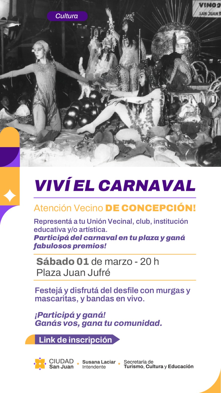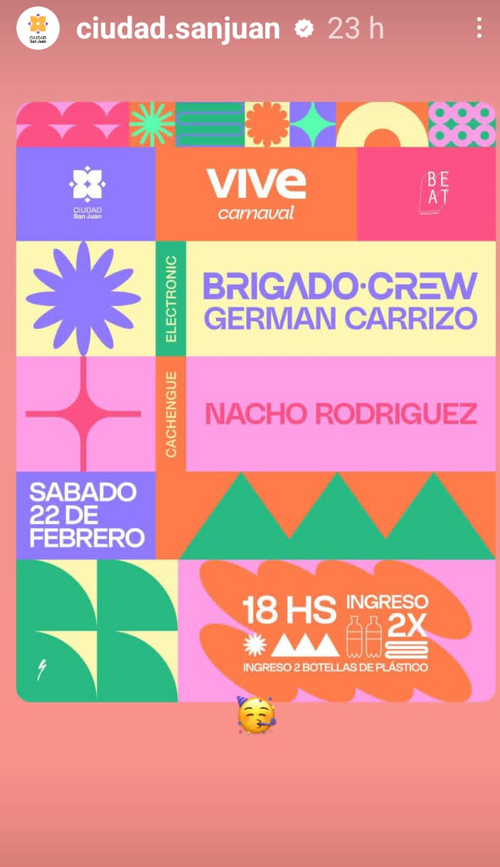 La Municipalidad de la Ciudad de San Juan invita a los sanjuaninos a revivir la alegría y el color de los tradicionales carnavales sanjuaninos. Con desfiles, murgas y espectáculos artísticos, esta es una fiesta para disfrutar en familia, y comienza el hoy viernes 21 de febrero.
