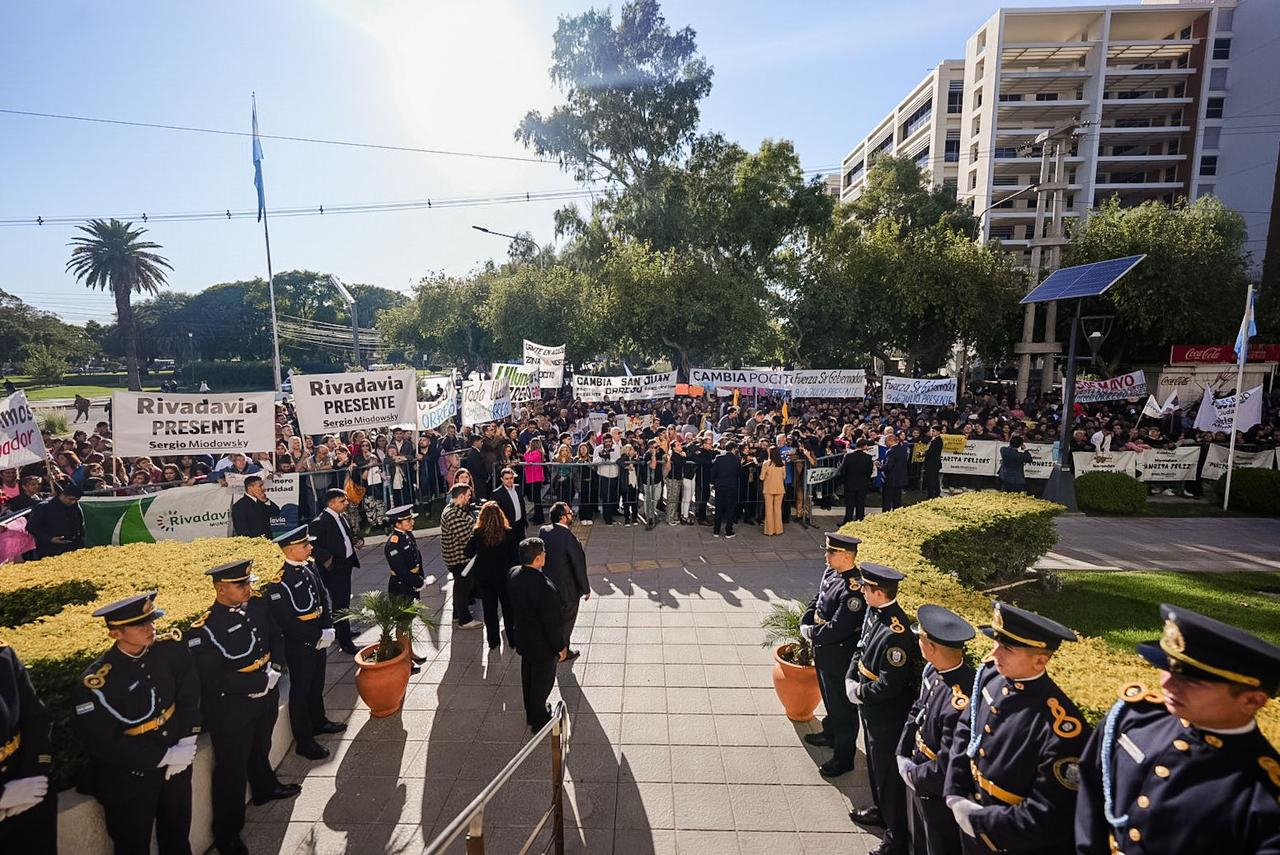 Cientos de simpatizantes de la provincia sanjuanina frente a la legislatura esperaron al gobernador Macelo Orrego.