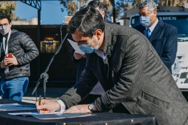 Además, junto al intendente Cristian Andino y parte de su Gabinete, Sergio Uñac firmó un convenio para la puesta en marcha de una oficina del Registro Civil y compartió la entrega de un camión 0 km.