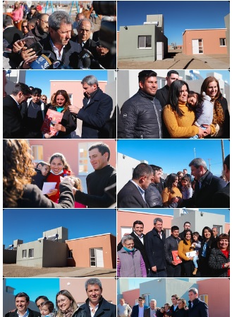 La entrega de llaves a los adjudicatarios se desarrolló casa por casa. El gobernador recorrió las viviendas junto a los emocionados flamantes dueños.