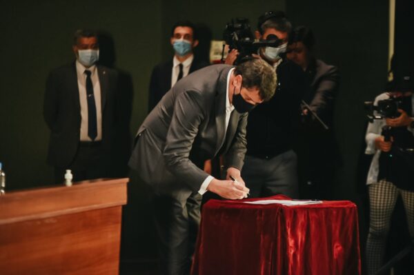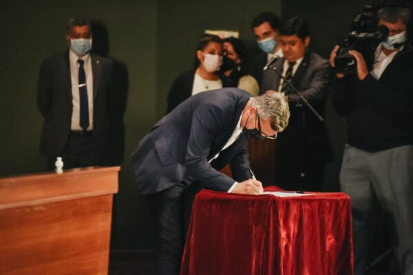 En primer lugar, se dio lectura y el gobernador Uñac entregó el decreto de huésped oficial al presidente Alberto Fernández. Luego, se presentó un video institucional en el marco del lanzamiento del Clúster y se prosiguió a la firma del convenio entre IMPSA y EPSE, así como la firma de un memorándum de entendimiento denominado Aprovechamiento Hidroenergético Multipropósito El Tambolar y Fábrica de Paneles Fotovoltaicos, el cual fue rubricado entre el gobernador Sergio Uñac y el secretario de Energía, Darío Martínez. Seguidamente, se procedió a la firma para avanzar en la concreción del Clúster de Energía Renovables Nacional entre Nación y las provincias participantes.