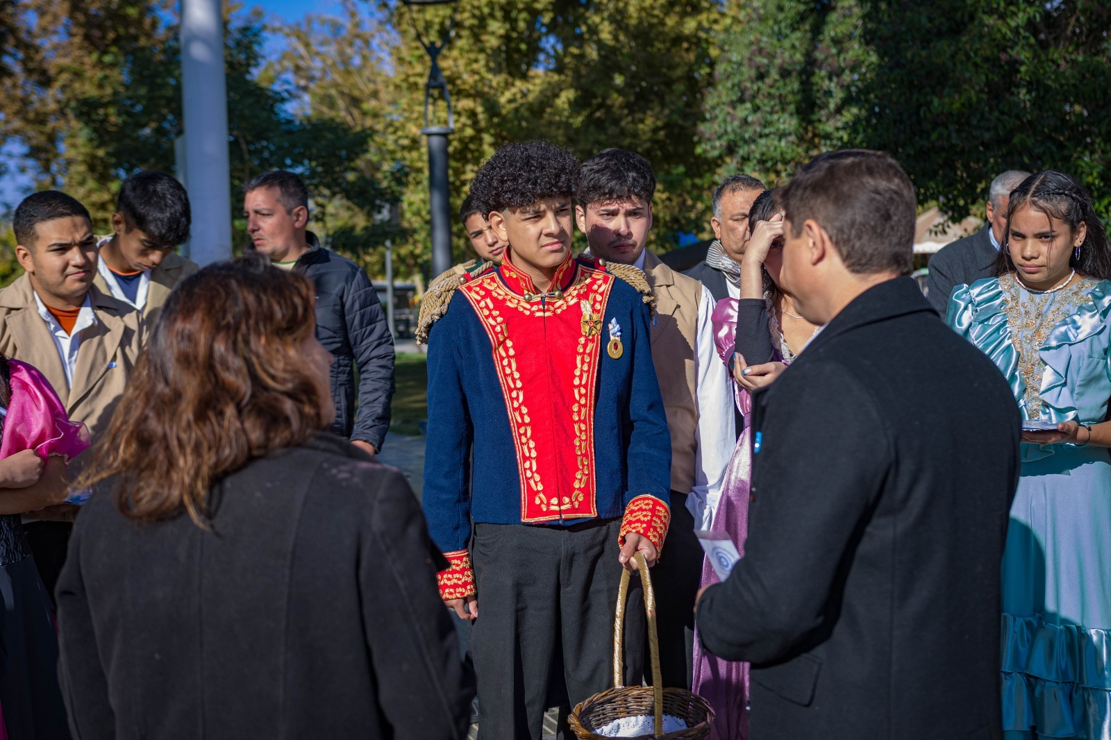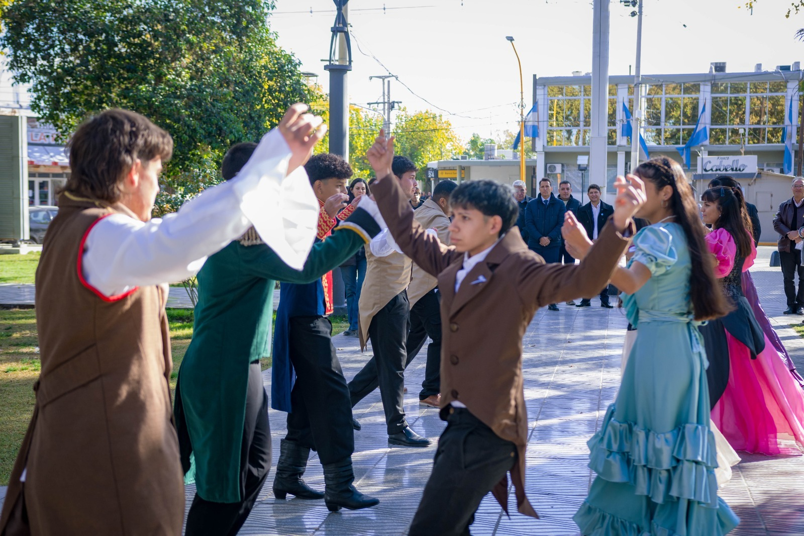 Tuvimos el placer de recibir a los alumnos de la Escuela Provincial Santa Lucía en nuestra plaza departamental. Realizaron una hermosa intervención artística a través de un ‘Gato’, danza folclórica típica argentina. Junto a los miembros del Honorable Concejo Deliberante y funcionarios departamentales, dimos la bienvenida a los estudiantes. Las docentes Vanesa Quiroz y Cecilia Vaca compartieron sus conocimientos y brindaron una clase de danza folklórica para todos los presentes. Además, los estudiantes repartieron escarapelas, símbolo de nuestra identidad nacional. Fue una hermosa jornada llena de cultura y alegría que nos enorgullece, expresó el intendente de Santa Lucía Juan José Orrego.