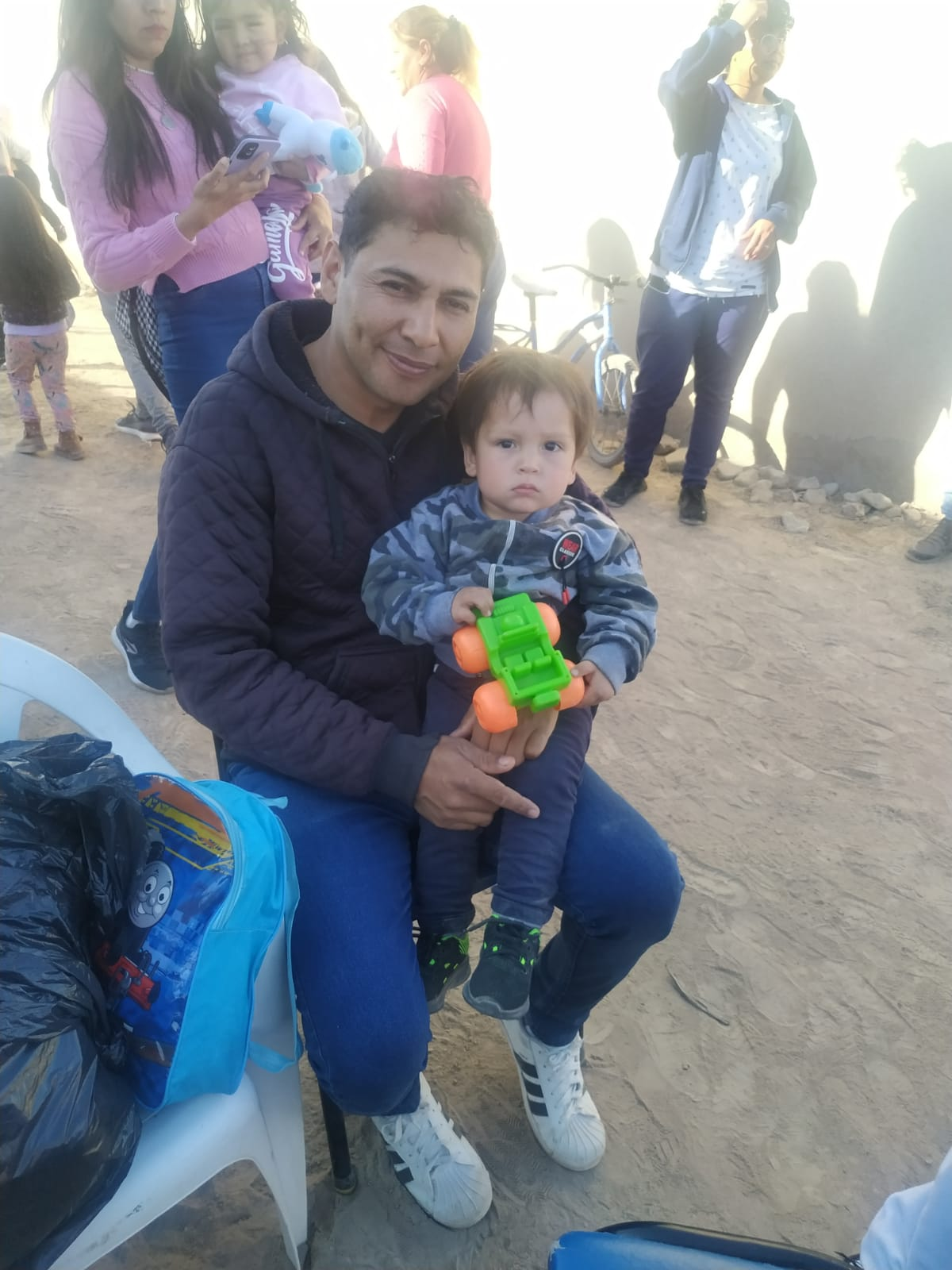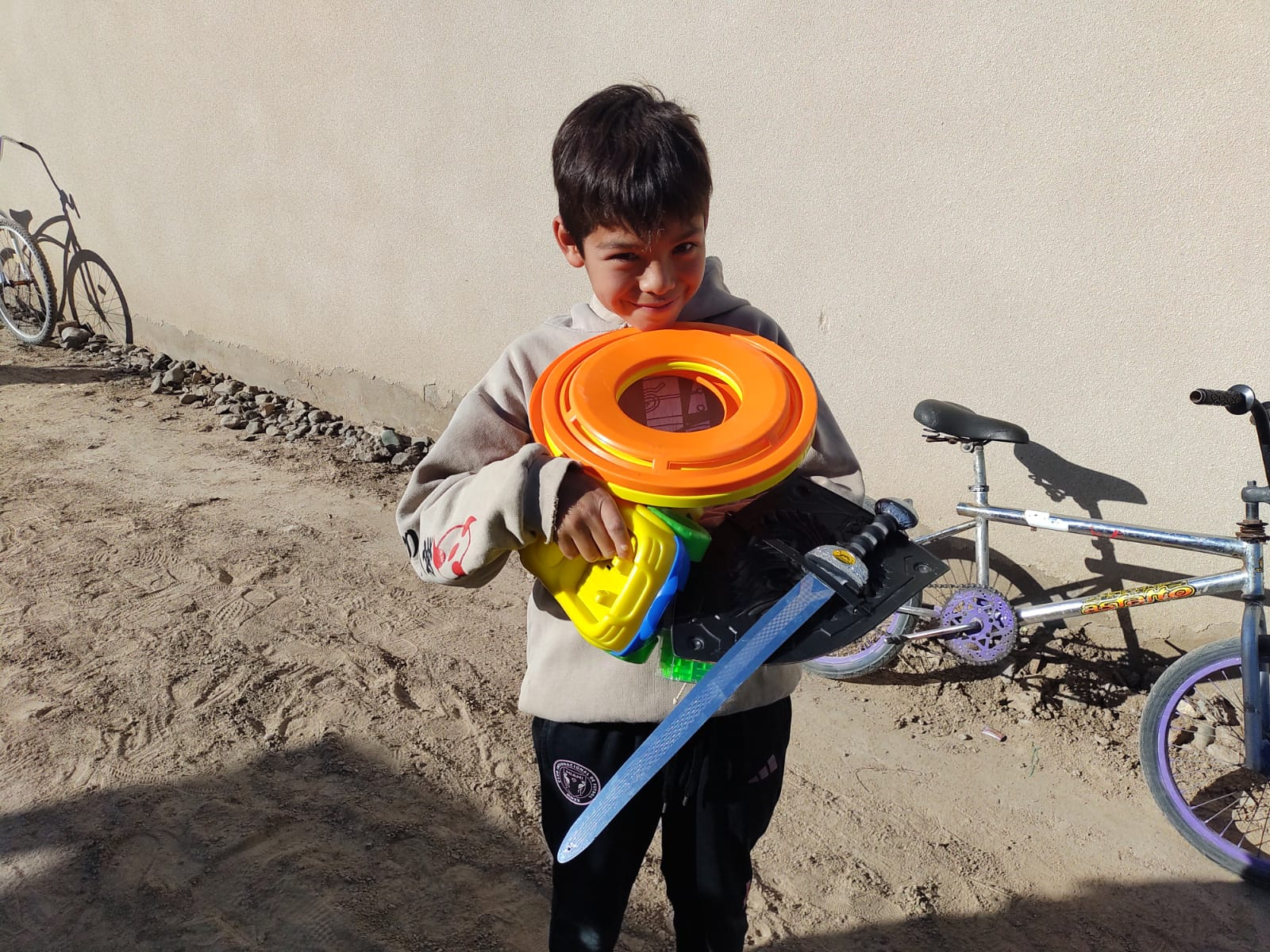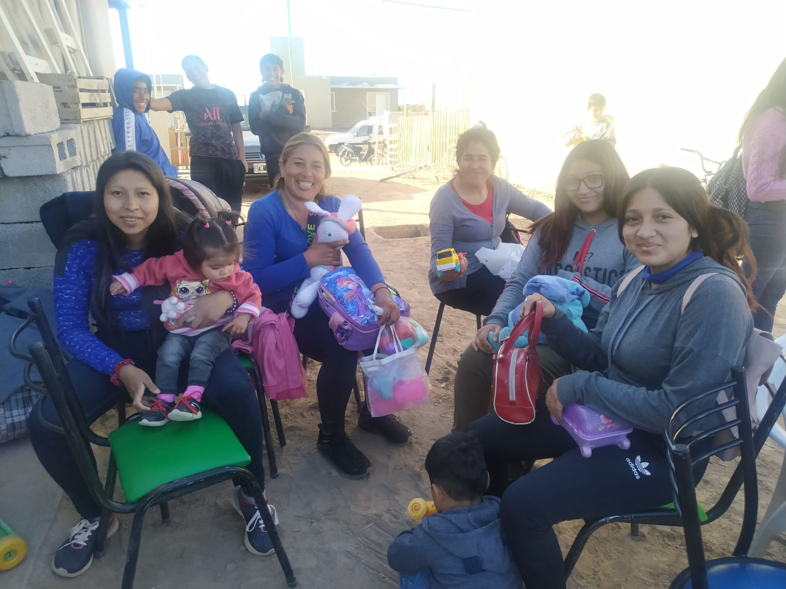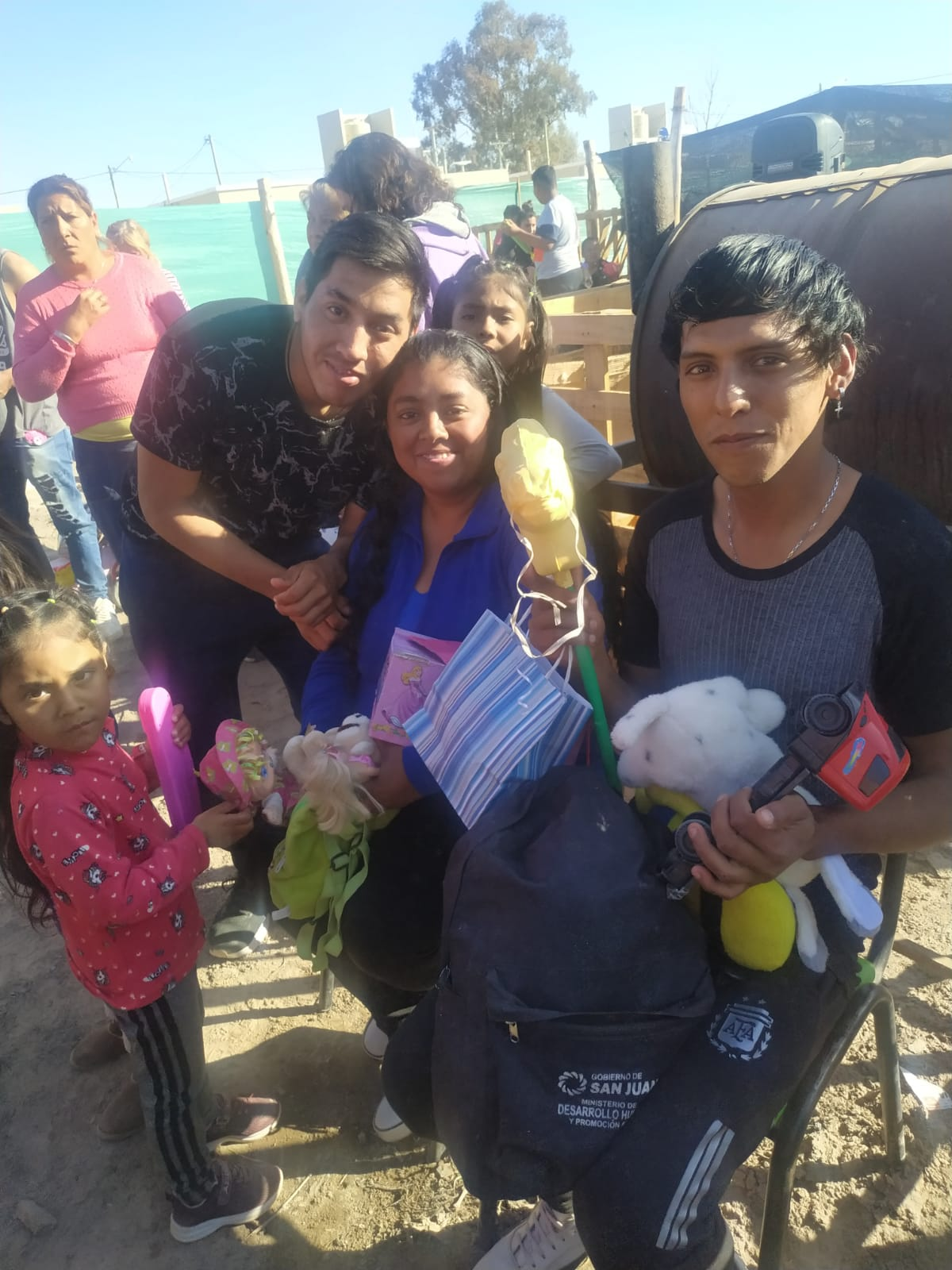 Además de los juguetes, el chocolate, medialunas, galletas etc, se le dejó a la comunidad Huarpe, ropa para ser compartidas entre las familias, bicicletas, entre otros elementos.