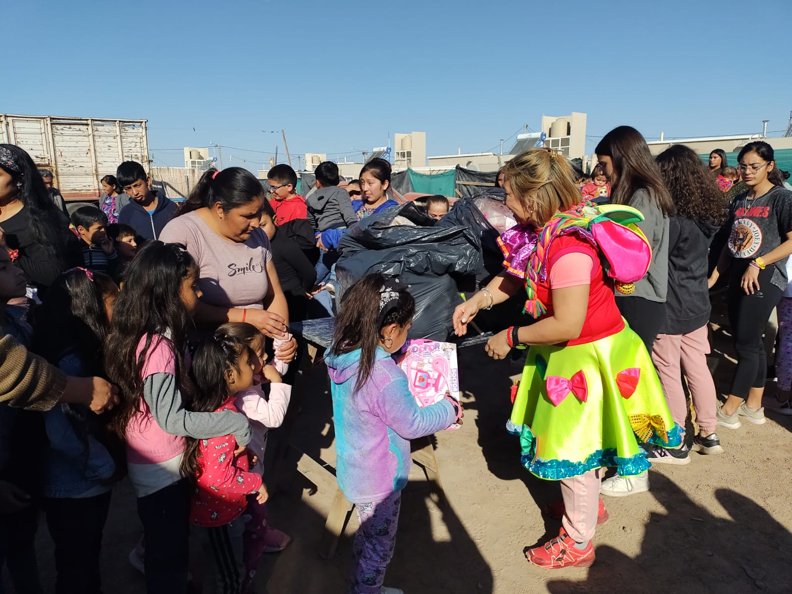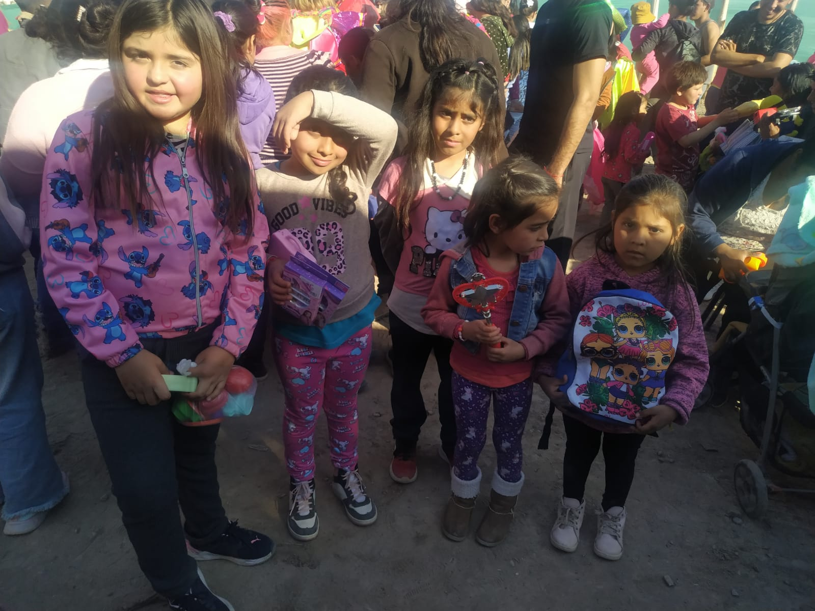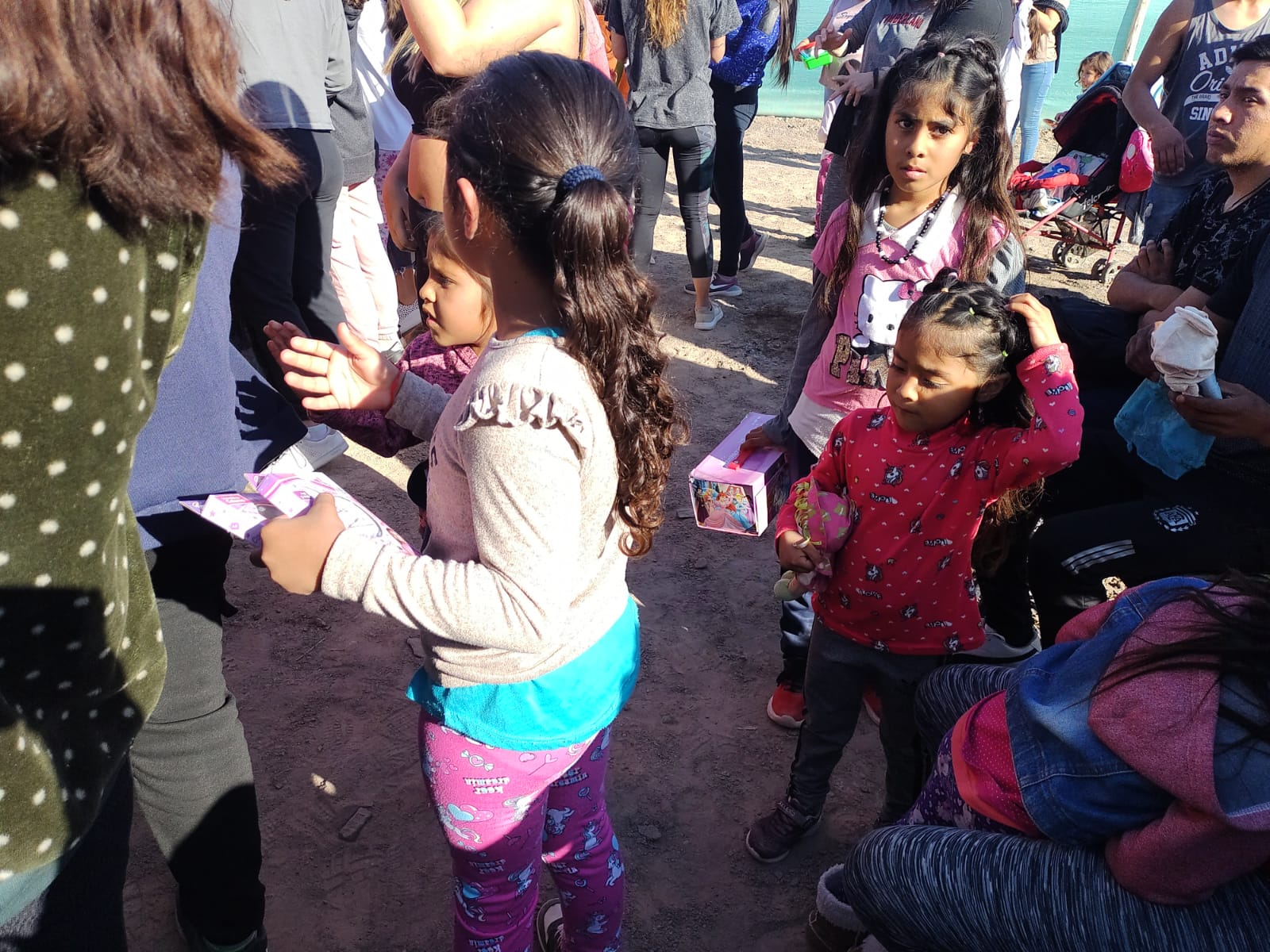 Además de los juguetes, el chocolate, medialunas, galletas etc, se le dejó a la comunidad Huarpe, ropa para ser compartidas entre las familias, bicicletas, entre otros elementos.