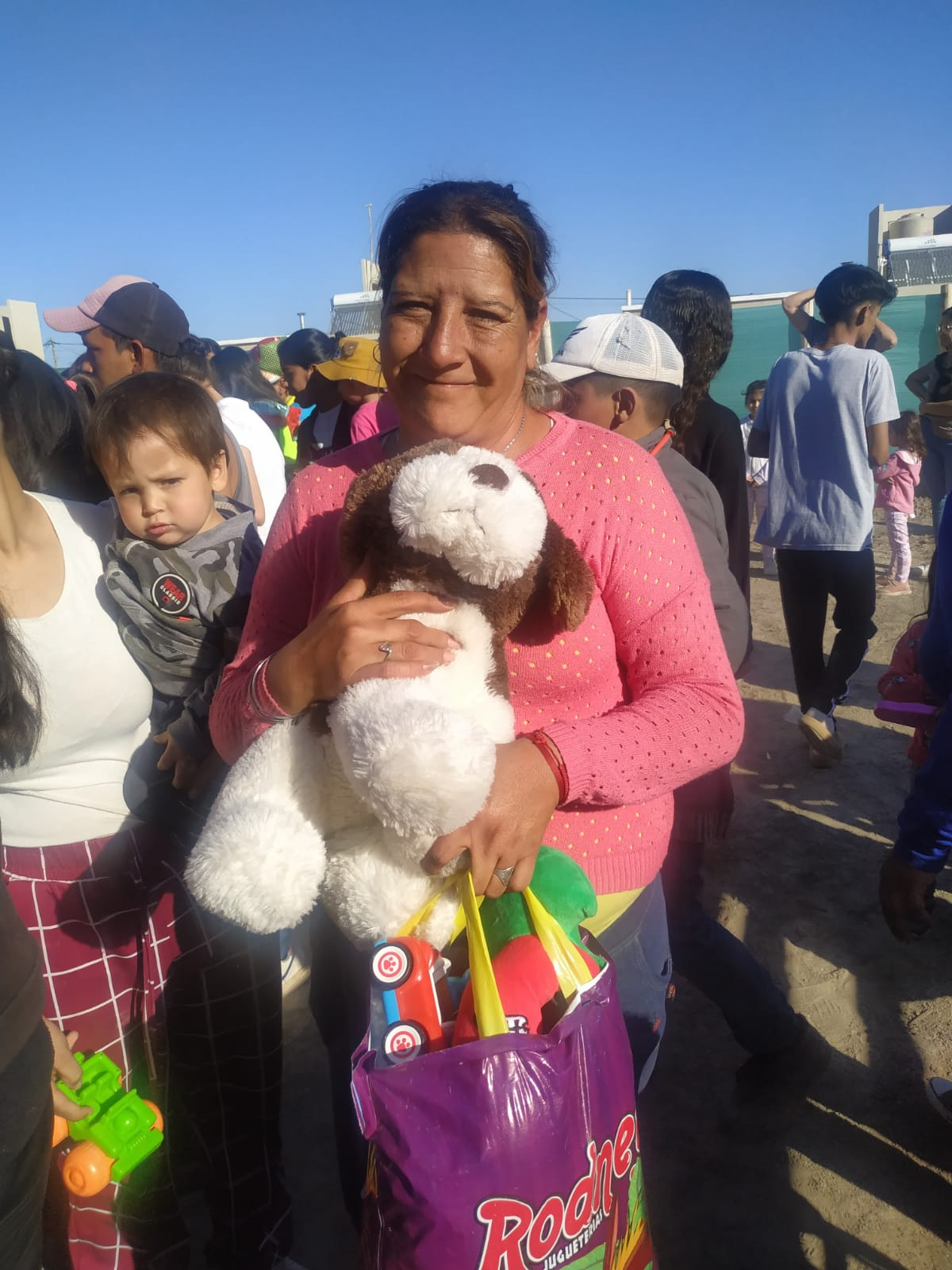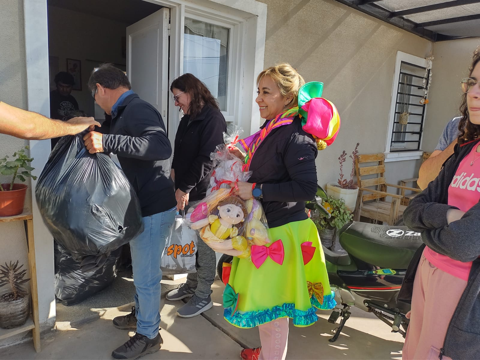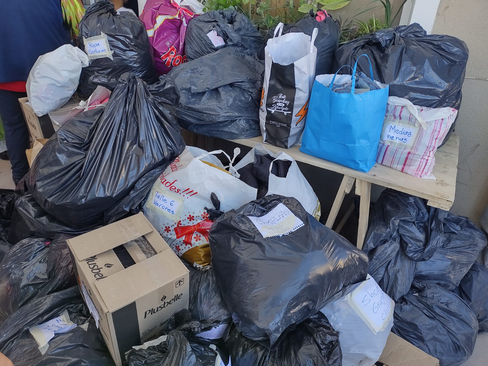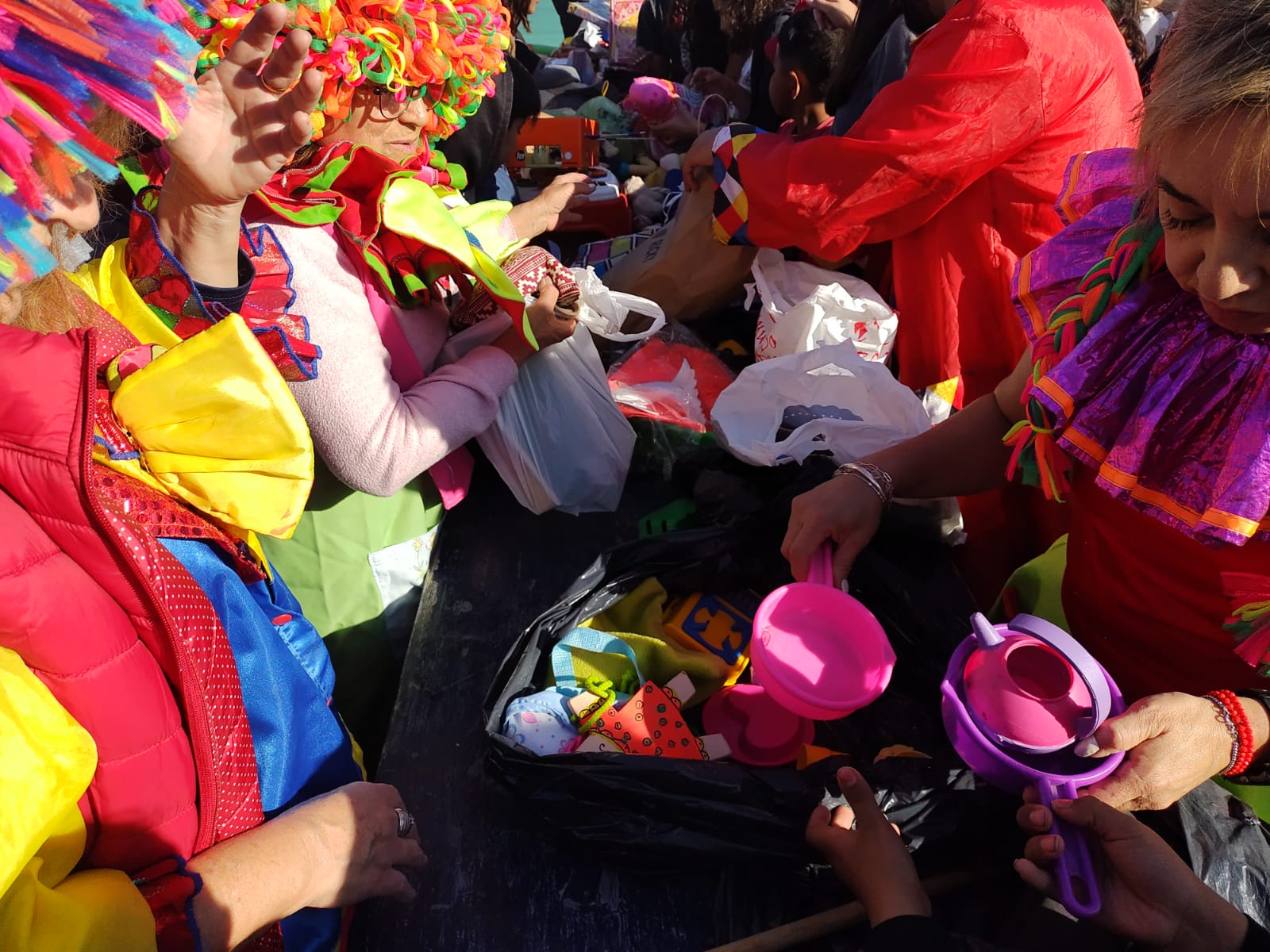 Además de los juguetes, el chocolate, medialunas, galletas etc, se le dejó a la comunidad Huarpe, ropa para ser compartidas entre las familias, bicicletas, entre otros elementos.