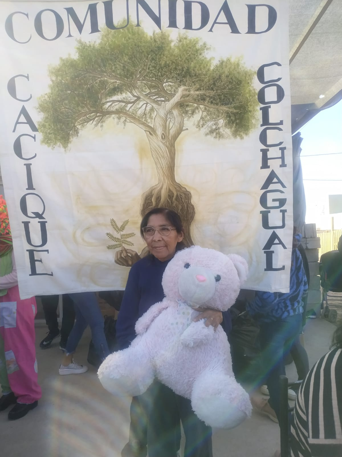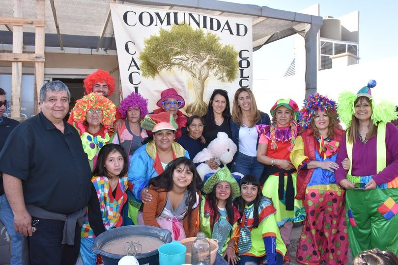 María Zalazar. Cacique, Referente Huarpe de Cochagual en el departamento de Sarmiento, recibió a la presidenta de la Fundación Solydar, Susana Canteros de Mercado, organizadora de este gran chocolate para los niños, niñas de la comunidad Huarpe.