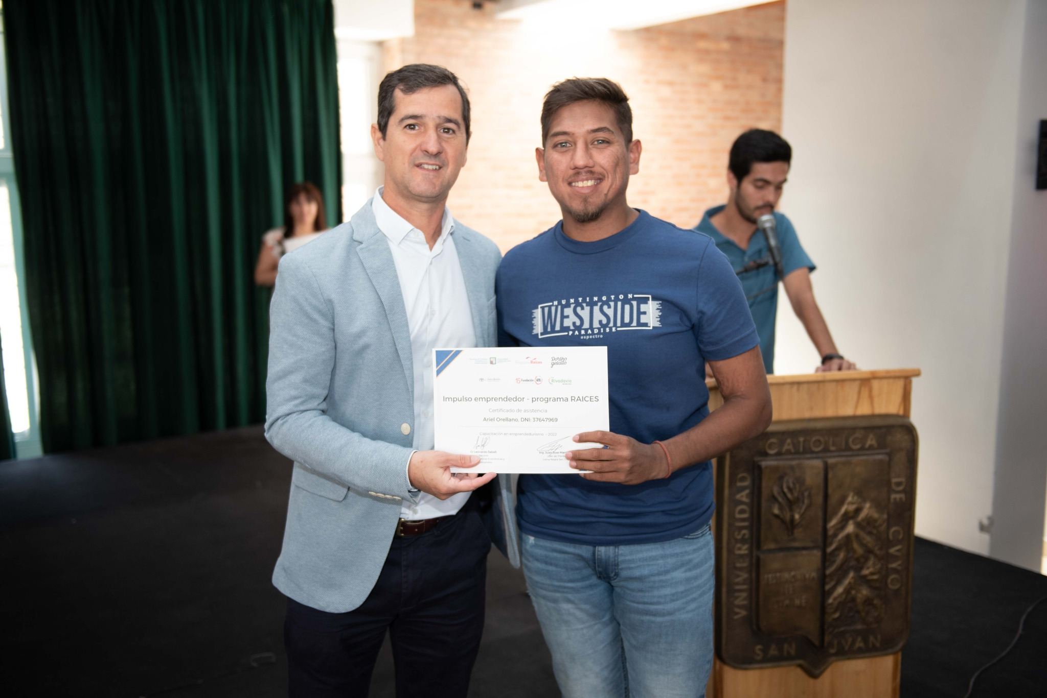 Junto a la Universidad Católica de Cuyo, Fundación Loma Negra, Portho Gelatto y Señor González entregamos los certificados de la “Tercera Edición de Proyectos Raíces, del Programa Impulso Emprendedor”.