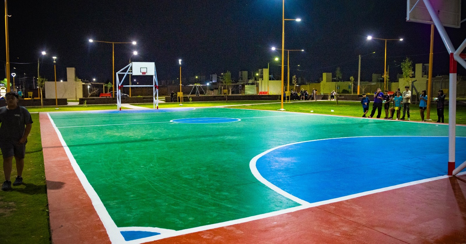 Te vas a encontrar con arcos de fútbol, aros de básquet, bancos, papeleros, nueva y modernas iluminación LED.