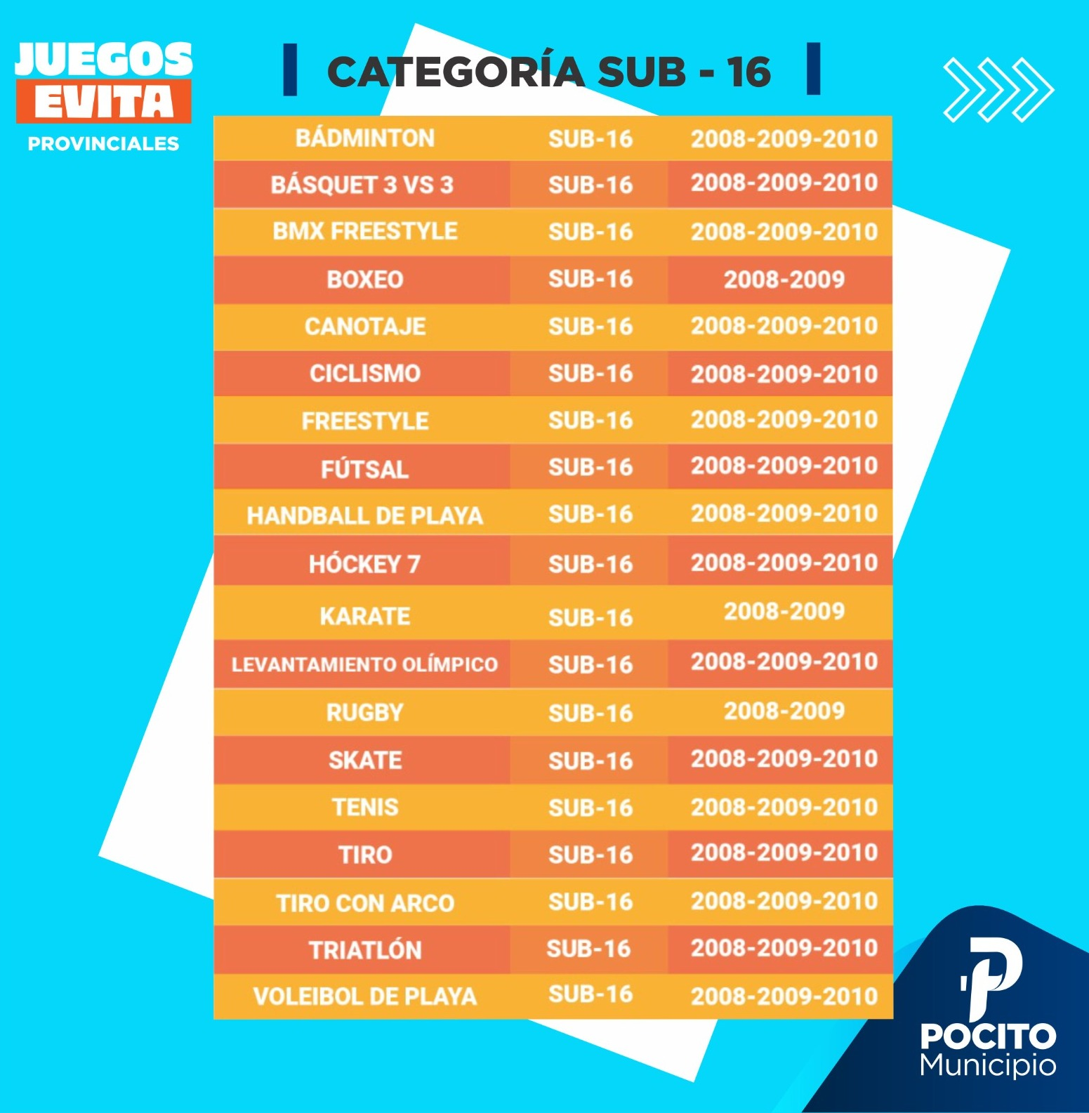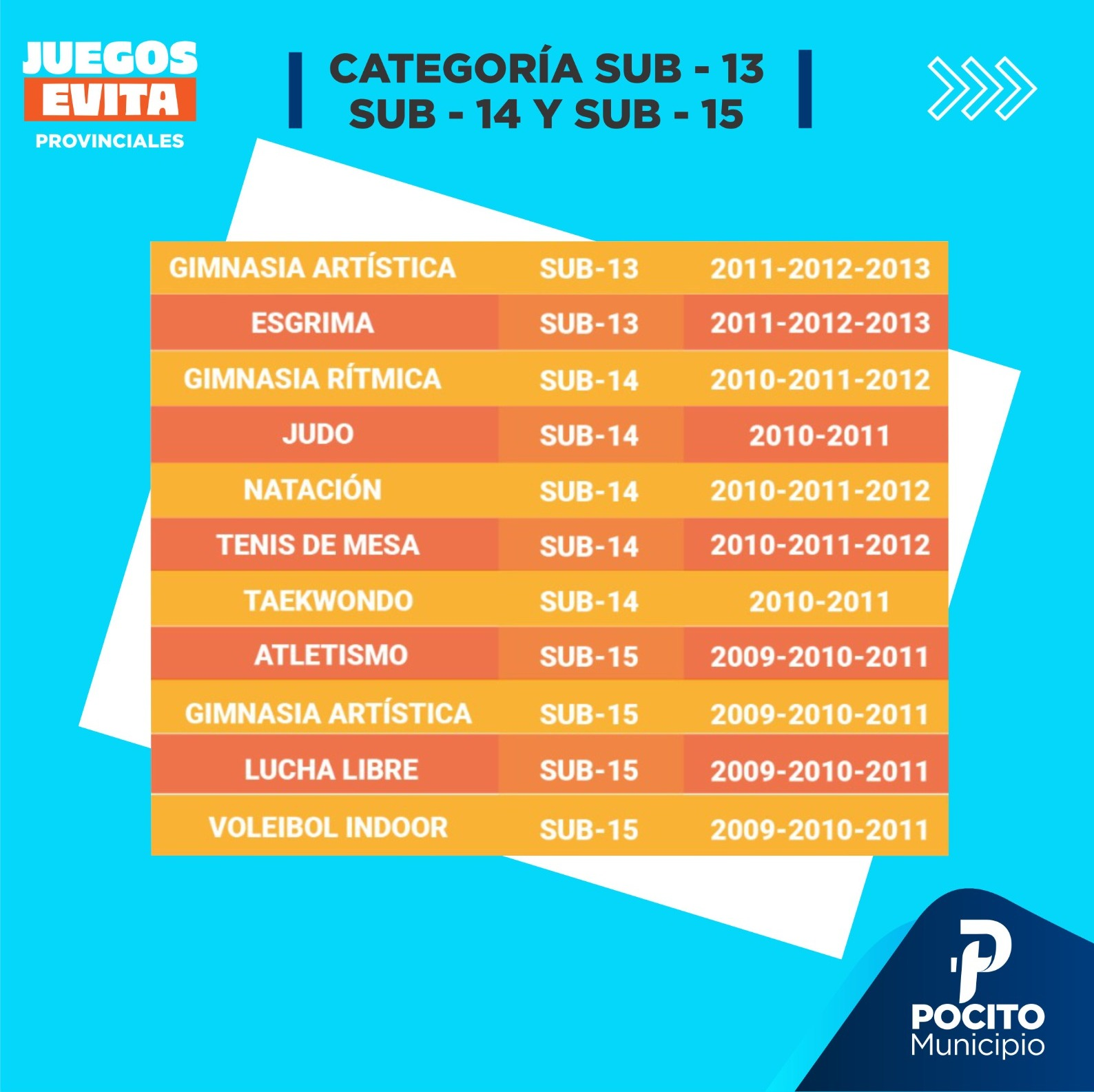 Las categorías a competir son SUB-13, SUB 14, SUB 15 y SUB-16; también deporte adaptado y adulto mayor.