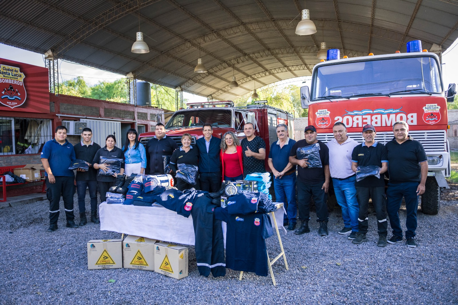 Esta semana, el presidente del Honorable Concejo Deliberante, Juan Manuel Roca, junto a funcionarios del departamento en representación del intendente Juan José Orrego, entregaron equipamiento, nueva indumentaria y elementos de trabajo al Cuartel de Bomberos ubicado en nuestro departamento. Gracias por la dedicación en apoyo a nuestros valientes bomberos en su labor diaria, expresó el intendente de Santa Lucía Juan José Orrego.👩‍🚒