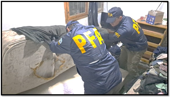 El procedimiento tuvo lugar durante la tarde del sábado 24 de mayo, en el marco de una investigación coordinada por la DIVISIÓN UNIDAD OPERATIVA DE INVESTIGACIONES ESPECIALES SAN JUAN de la PFA, bajo directivas del Juzgado Federal de Garantías de la provincia, a cargo del Dr. Leopoldo Rago Gallo. La causa fue impulsada por la Unidad Fiscal Federal San Juan, a cargo del Dr. Francisco Maldonado, con la participación del Área de Investigación y Litigios de Casos Sencillos, dirigida por la Dra. Carolina Menéndez.