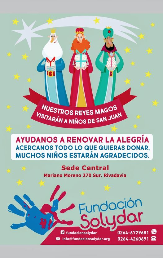 La presidenta de la Fundación Solydar, Susana de Mercado, junto a un gran equipo de colaboradores, escribió a los Reyes Magos, para que su presencia llevara Felicidad! a los que menos posibilidades tienen de un obsequio. Fue así, que los Reyes Magos leyeron la carta, y decidieron pasar por calle 8 y Alfonso XIII.