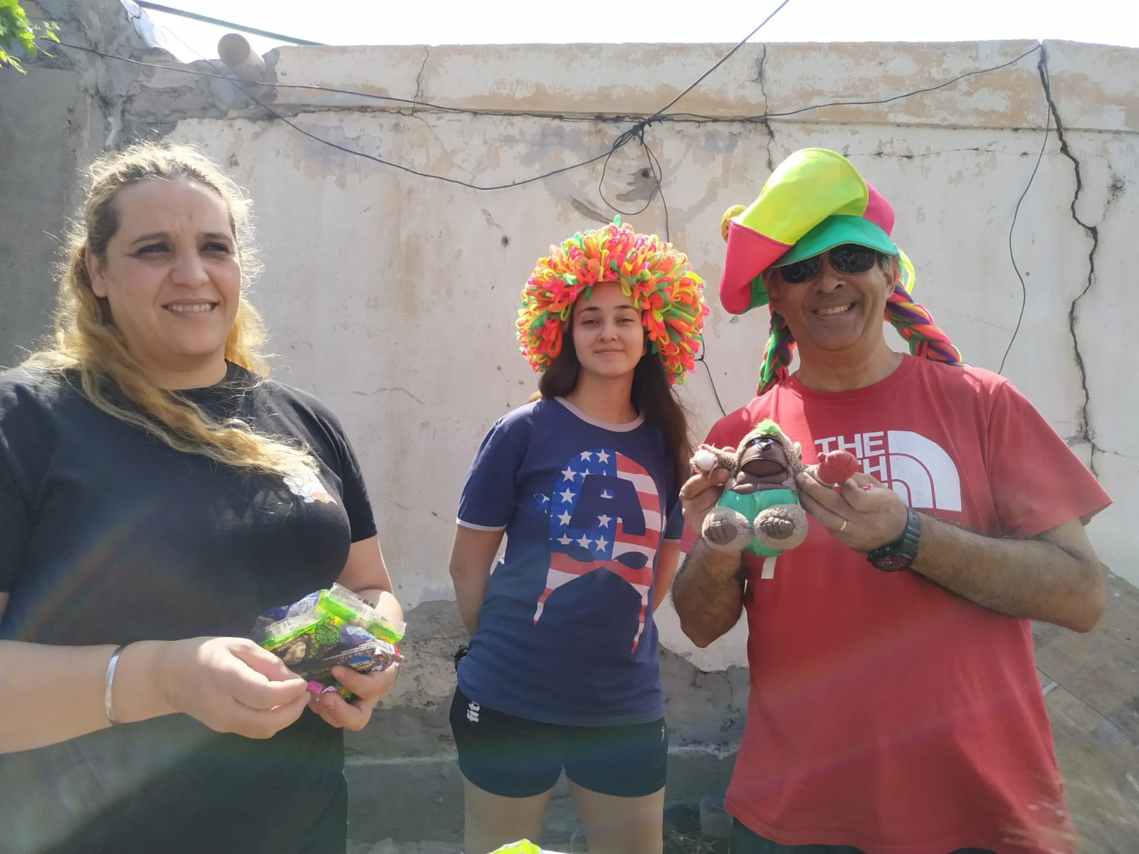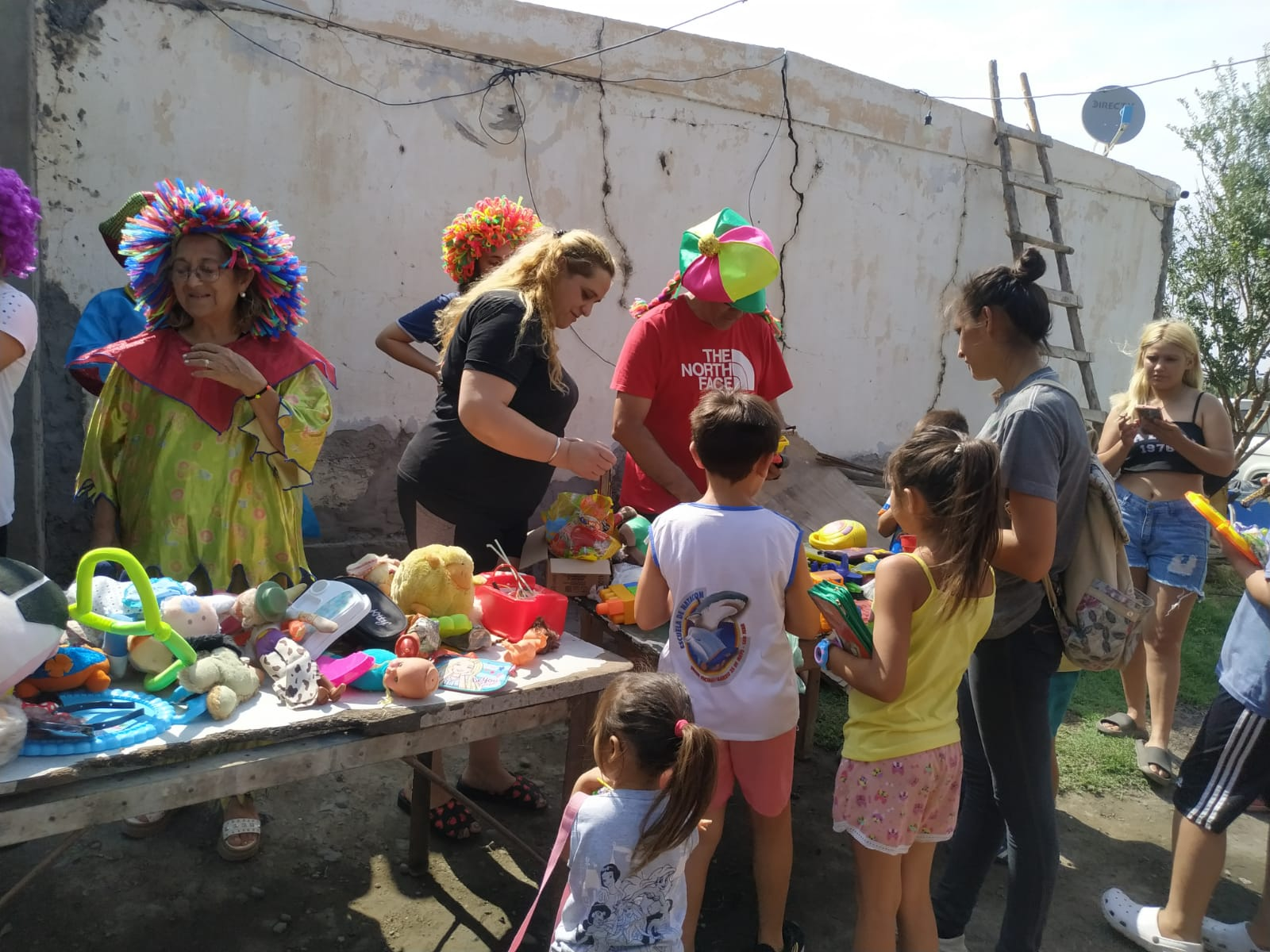 Los payasos, también se dieron cita en el lugar, para sacar una sonrisa a todos los niños/as presentes. Un rico desayuno, juguetes y golosinas, se llevaron cada uno.