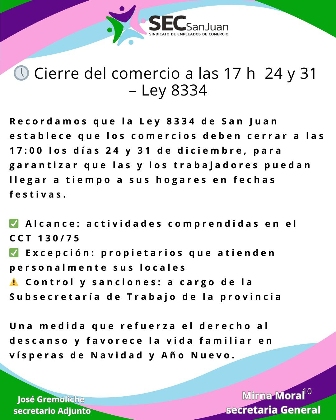 La iniciativa tiene como objetivo garantizar que los empleados y empleadas de comercio puedan retirarse de sus lugares de trabajo a las 17 horas, conforme a lo establecido por la Ley Provincial N.º 8.334, y así compartir las fiestas junto a sus familias.