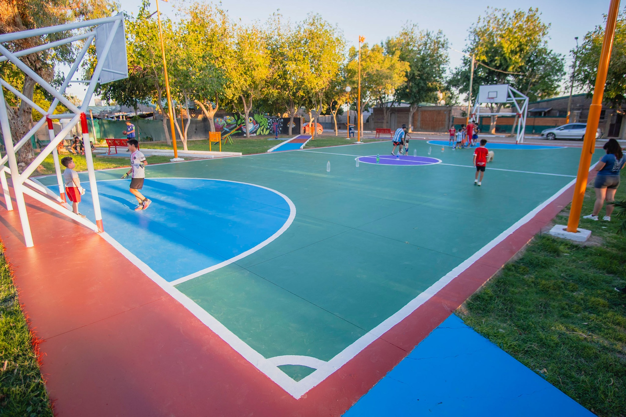 Lo equipamos para que puedan hacer fútbol, básquet y hockey de la mano de los profes del municipio o cuando quieran.
