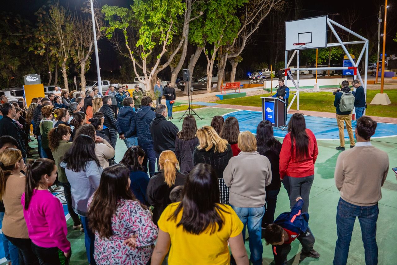 El Intendente Juan José Orrego, acompañado por diputado nacional Marcelo Orrego, funcionarios municipales y vecinos dejaron inauguradas las obras del nuevo Polideportivo y circuito de salud del barrio Gendarme Argentino, Ubicado en la calle Cordilleras de los Andes entre calle Angualasto y Sebastián Platero, en zona norte del departamento. La intervención consistió en recuperar e integrar dos espacios verdes y convertirlos en un lugar de esparcimiento, deporte y salud.