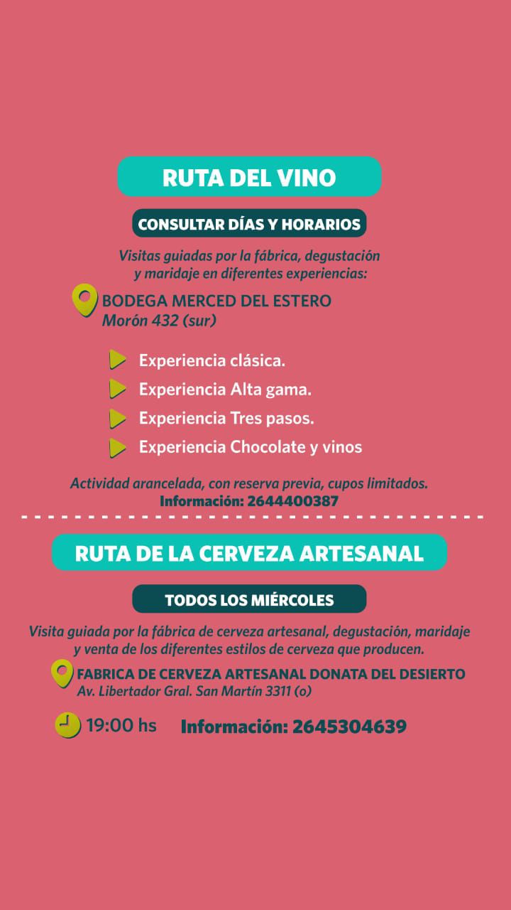 La Municipalidad de Rivadavia trabajó junto al Gobierno de San Juan y la Cámara de Prestadores Turísticos en la confección de un exhaustivo cronograma de visitas guiadas, degustaciones, maridajes, ecología y aventura en este receso invernal.