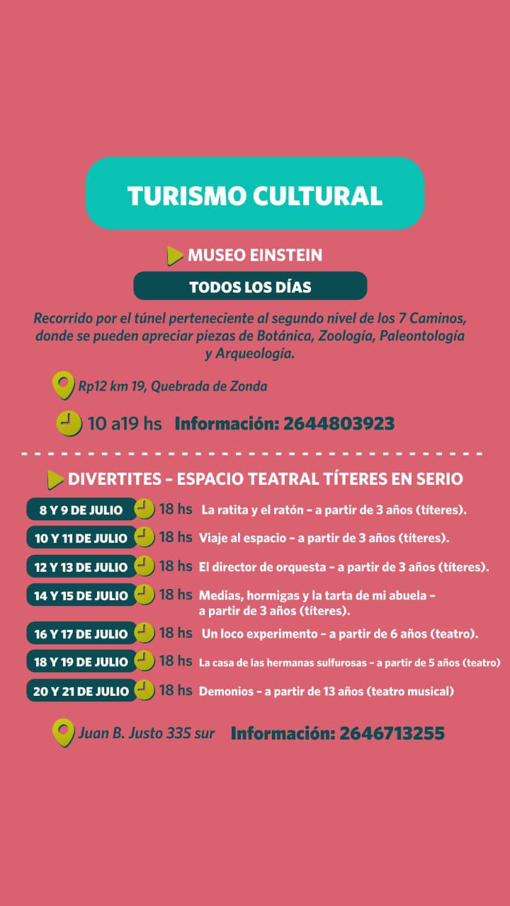 Finalmente el turismo cultural y de aventura también se anotan en estas fechas con un variado calendario de museología, títeres, tirolesa y trekking.