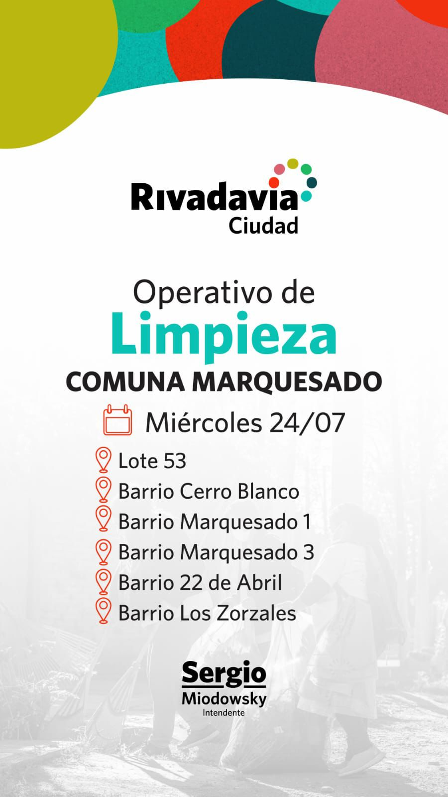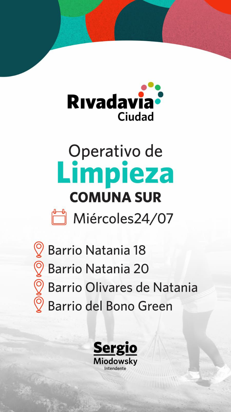 Rivadavia Ciudad y sus agentes municipales abordarán dos zonas diferentes en la semana del 22 al 27 de julio.