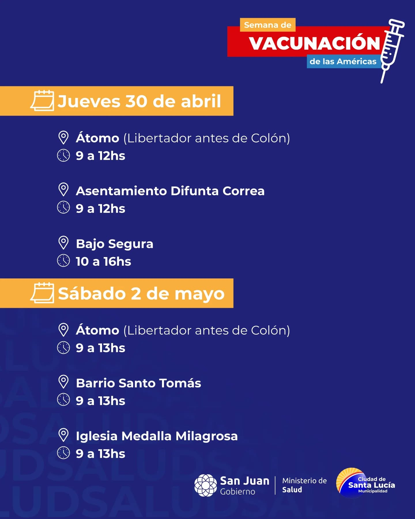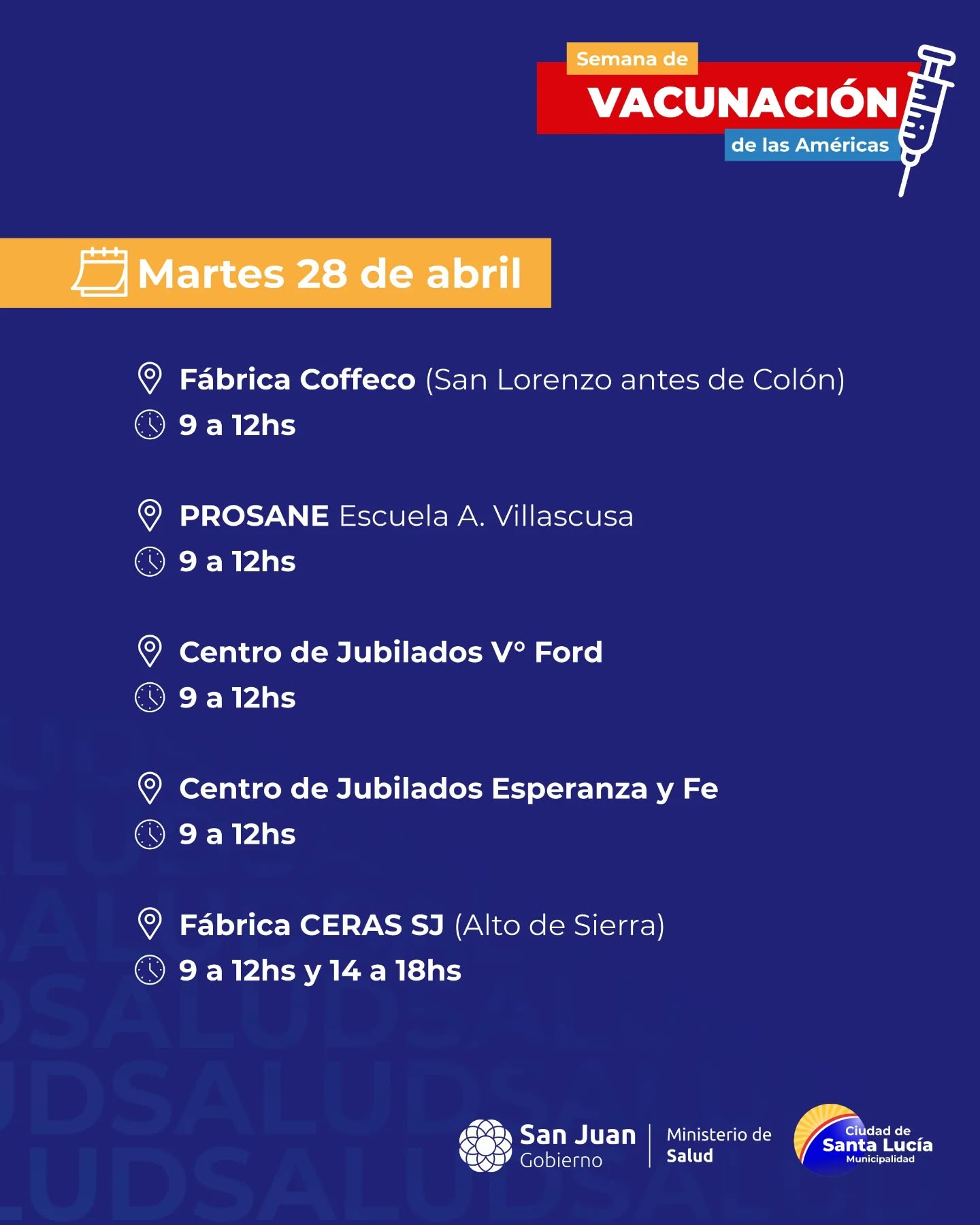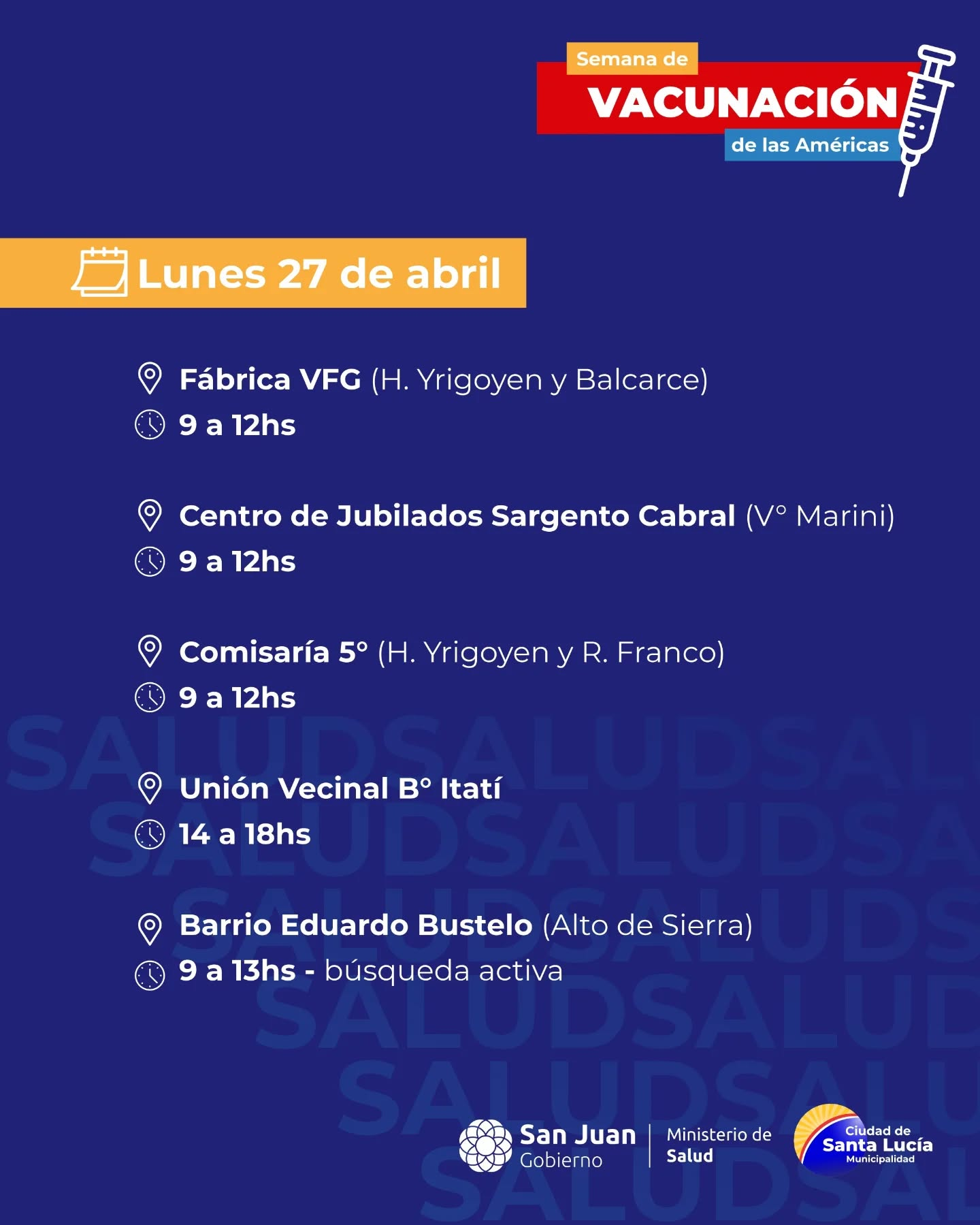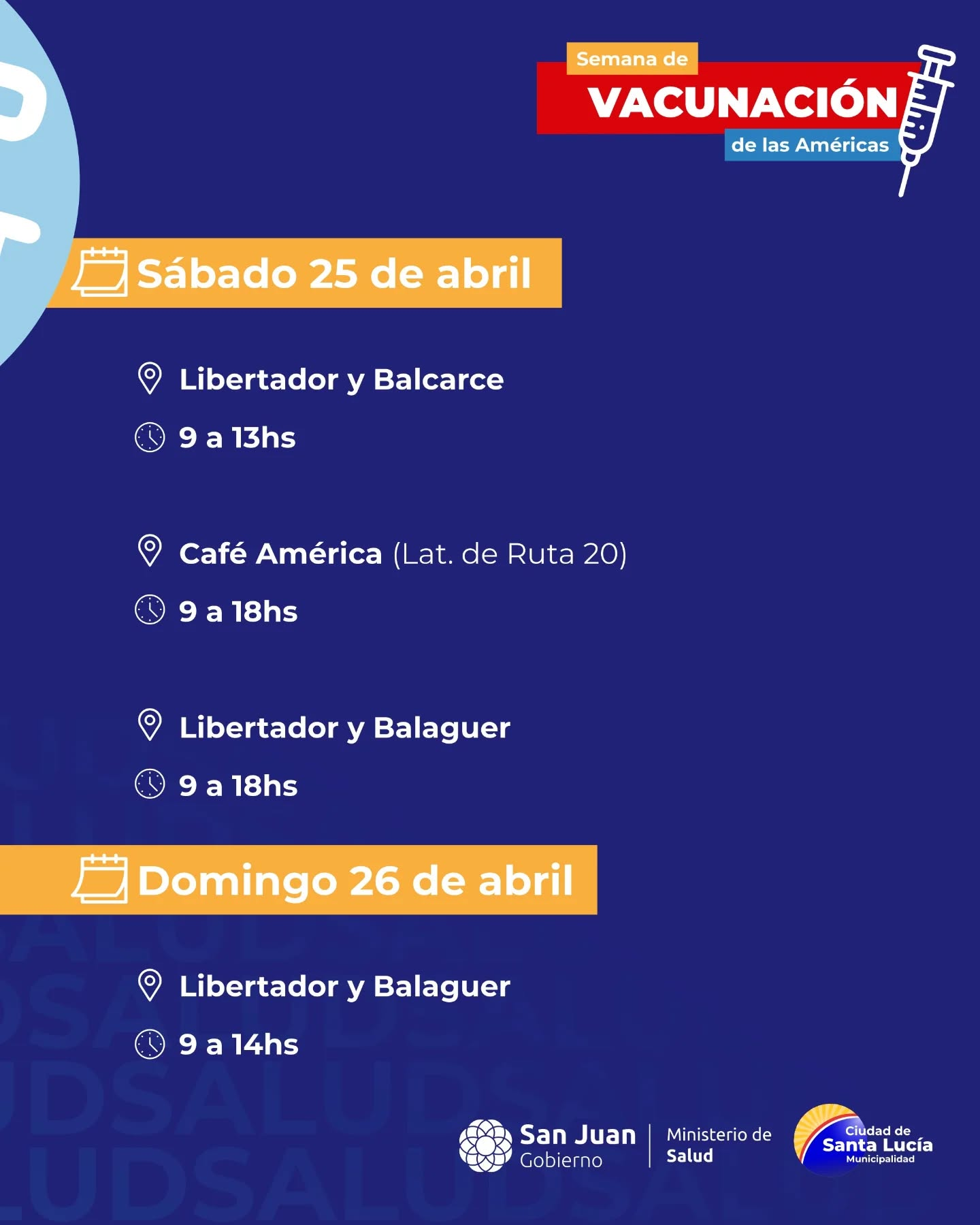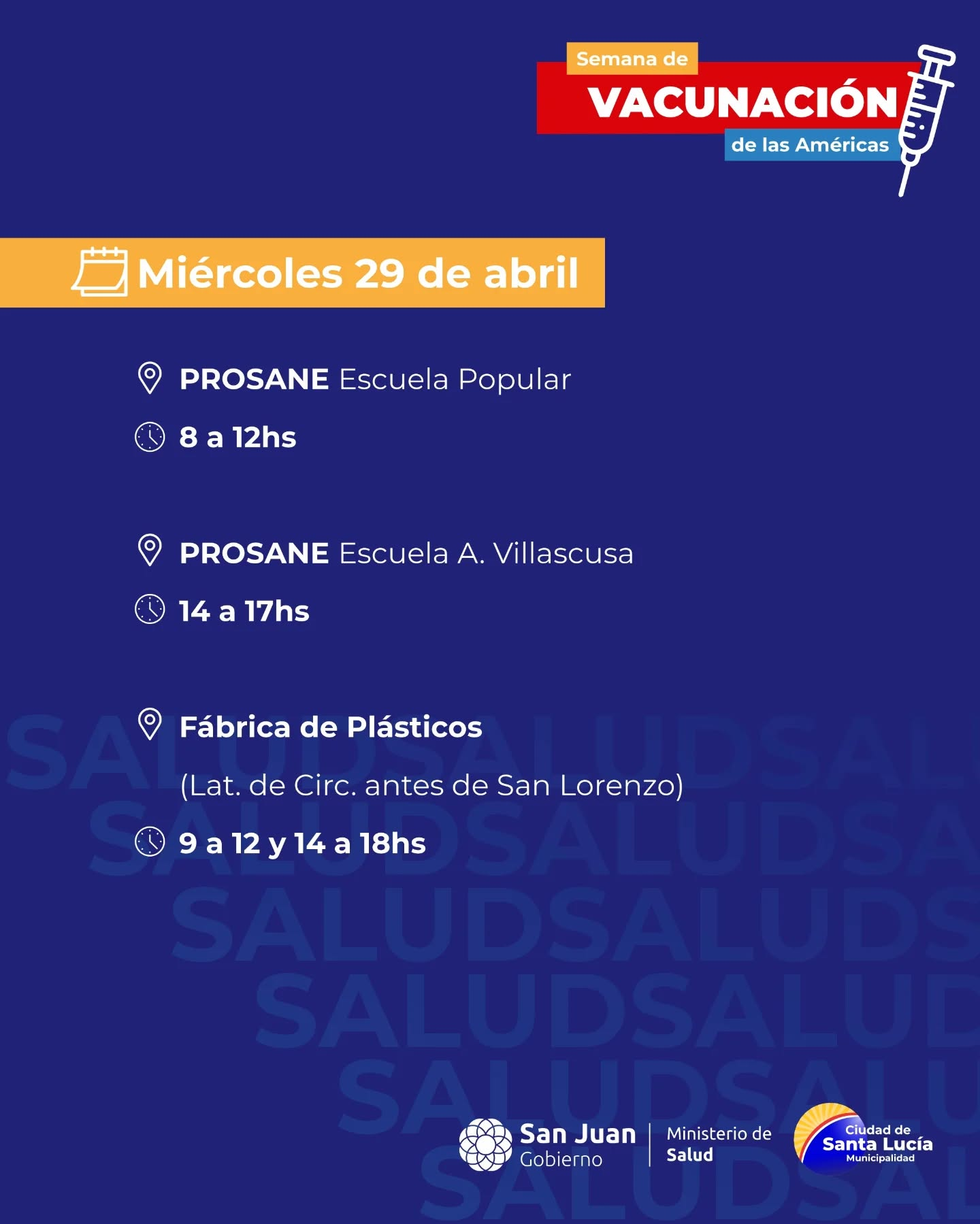 Se viene la Semana de Vacunación en las Américas y queremos que todos los vecinos estén al día. Junto al @minsaludsj te invitamos a revisar tu carnet y acercarte al punto más cercano.