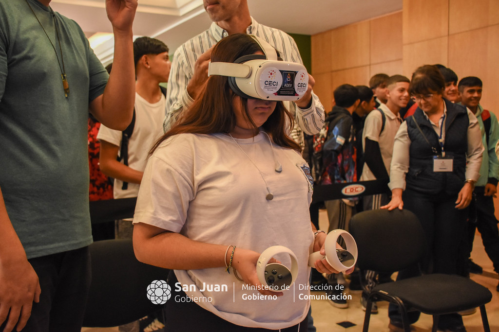Un gran atractivo que generó mucho entusiasmo entre los presentes, fueron los dispositivos de realidad virtual que aportó el Ministerio de Producción.