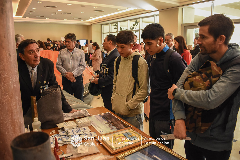 La muestra, declarada de Interés Educativo Provincial por Resolución Ministerial Nº 05608-ME, y de interés Legislativo, está destinada a docentes y alumnos de todos los niveles educativos, y público en general. Cuenta con la colaboración de las siguientes áreas de gobierno, instituciones y personalidades: Dirección de Culto y ONG; Dirección del Archivo General de la Provincia y SIPAR; Dirección de Comunicación; Armada Argentina-Delegación Naval de San Juan; Escuela Náutica ARA General Belgrano; Agrupaciones de veteranos “C.E.A.S.” y “2 de Abril”; Centro de Economía del Conocimiento e Innovación de San Juan (CECI); sobrevivientes del Crucero ARA General Belgrano; director del Instituto Cuestión Malvinas del Foro de Abogados de San Juan Carlos Sánchez, Mariano Eiben (productor y periodista), y expositores de vehículos a escala.