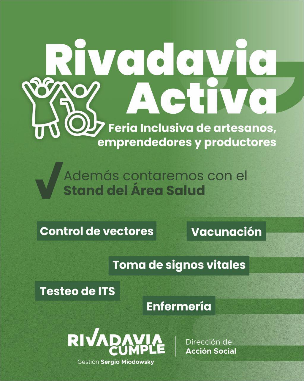 RIVADAVIA Rivadavia Activa EL REPORTERO 27 de enero de 2026 Rivadavia Activa reúne cultura, música, salud y producción local en un mismo espacio. La feria inclusiva se realiza los sábados 7 y 21 de febrero, de 19 a 23 horas, en la Plaza Madre Universal. Una propuesta abierta a todo público, con shows en vivo, danzas y exposiciones de arte. ¡Los esperamos! Navegación de entradas Anterior: Capacitarán a estudiantes de escuelas hogares en oficios con salida laboralSiguiente: Traslado Escolar: inscripciones abiertas Más historias RIVADAVIA Rivadavia avanza con más obras: nuevas veredas en Barrio Del Bono Green EL REPORTERO 22 de abril de 2026 RIVADAVIA Celebramos el Mes de la Madre Tierra con una jornada pensada para disfrutar en comunidad EL REPORTERO 21 de abril de 2026 RIVADAVIA Rivadavia Activa en tu barrio EL REPORTERO 21 de abril de 2026