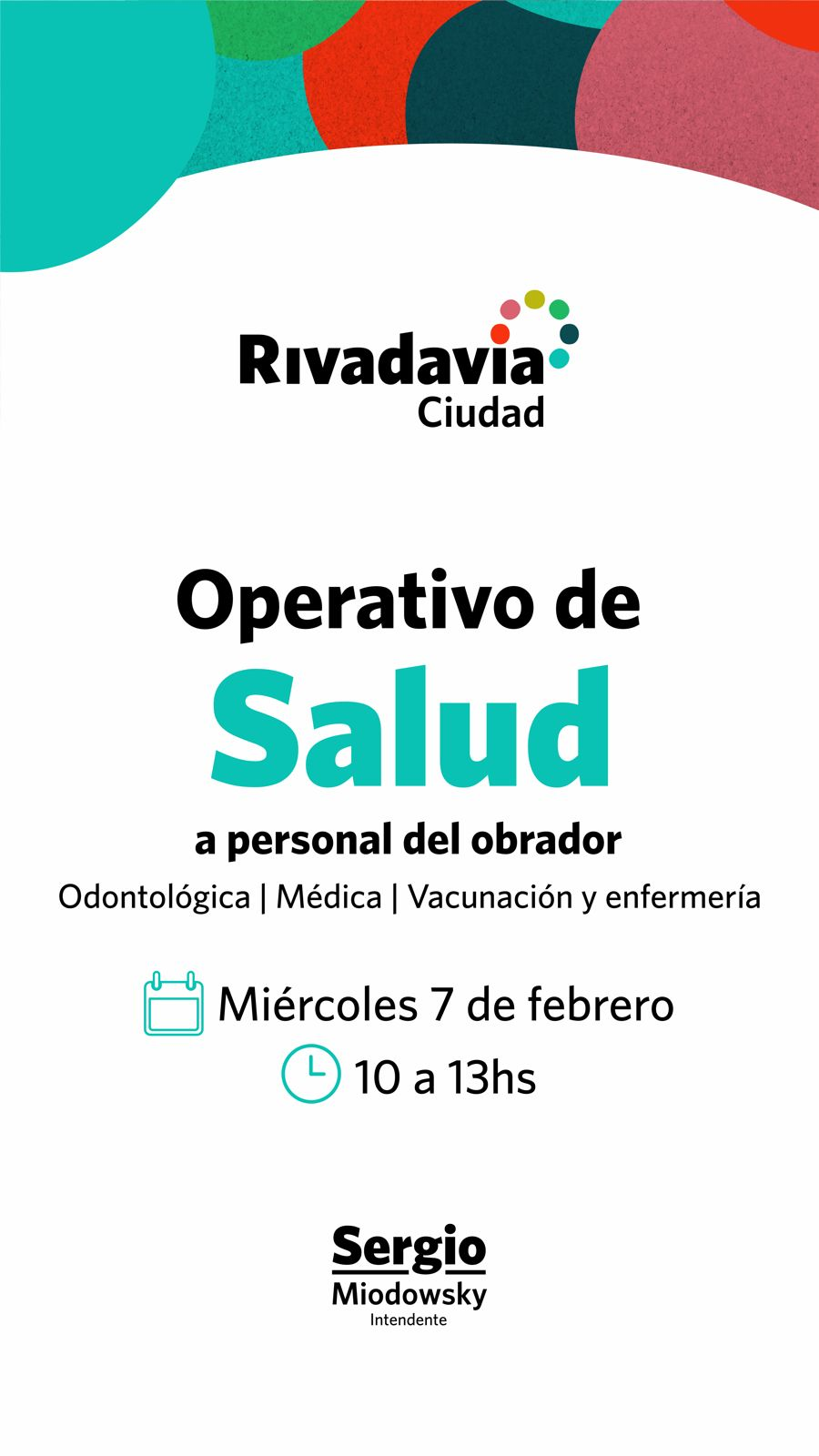 Rivadavia Ciudad anuncia los dos primeros Operativos de Salud de febrero.