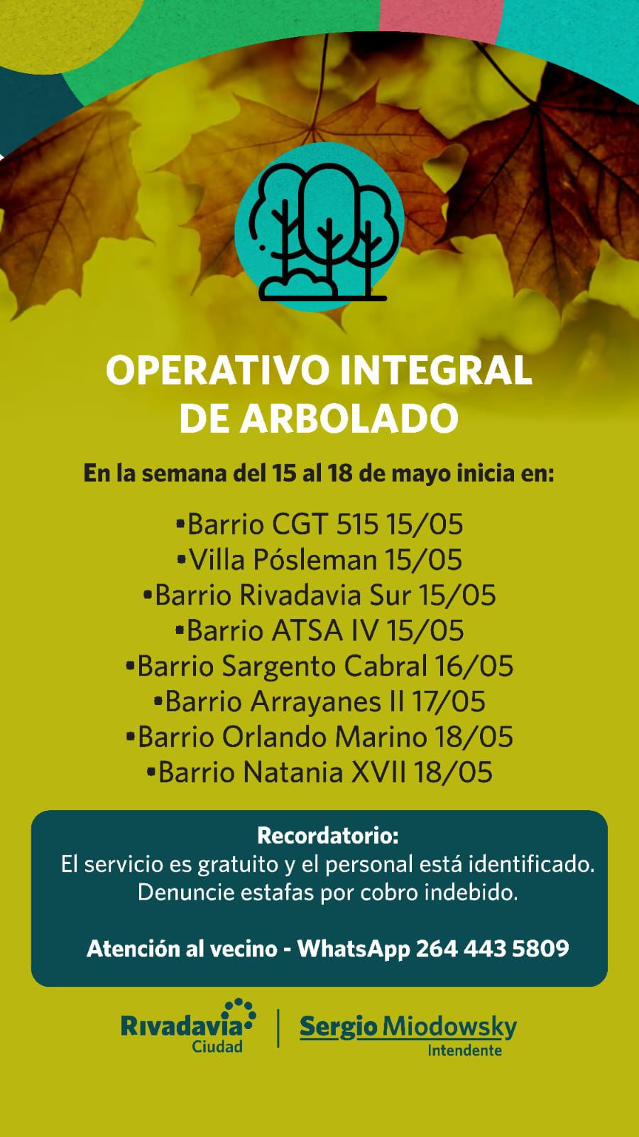 La Municipalidad de Rivadavia inició el Operativo Integral de Arbolado 2024 en la mañana de este 15 de Mayo, cuyas acciones se extenderán hasta el 15 de agosto.