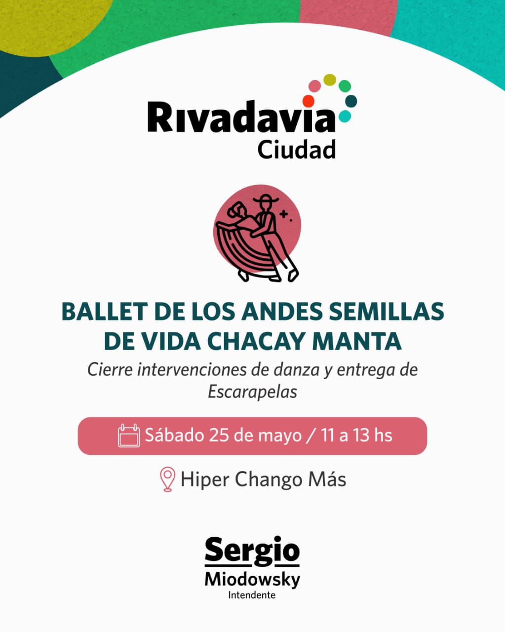 El día 25 de mayo será una jornada especial cargada de patriotismo en la celebración principal y por eso el Ballet llegará hasta el Híper Chango Más y se entregarán escarapelas entre las 11 y las 13 hs.