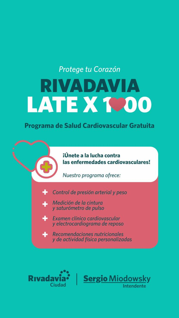 La Municipalidad de Rivadavia presentó el programa Rivadavia Late x 1000 por el cual se llevarán a cabo estudios cardiológicos sin cargo como estrategia de prevención de morbimortalidad.
