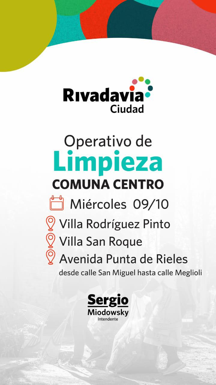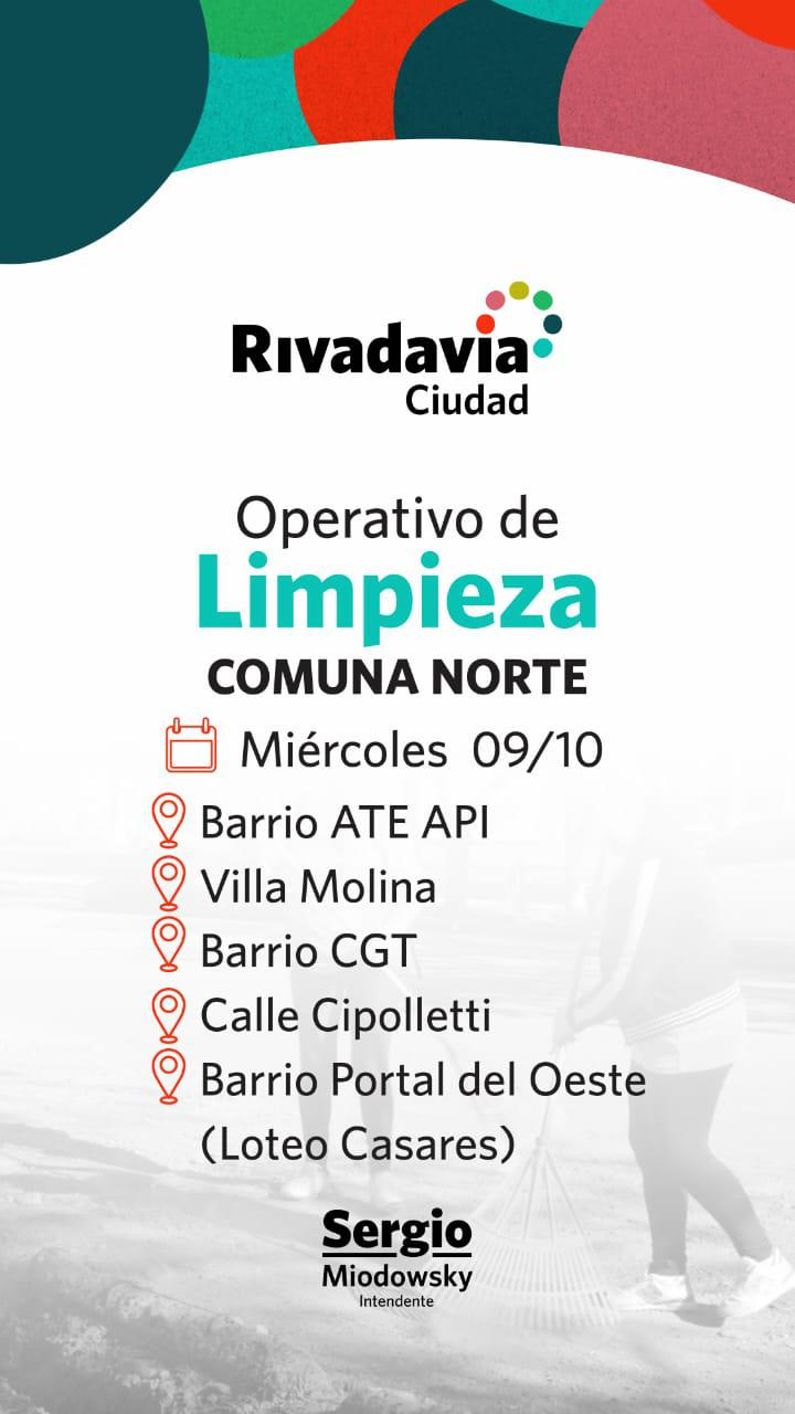La Municipalidad de Rivadavia a través de la Secretaría de Servicios, realizará ocho operativos de limpieza en dos zonas diferentes del departamento.