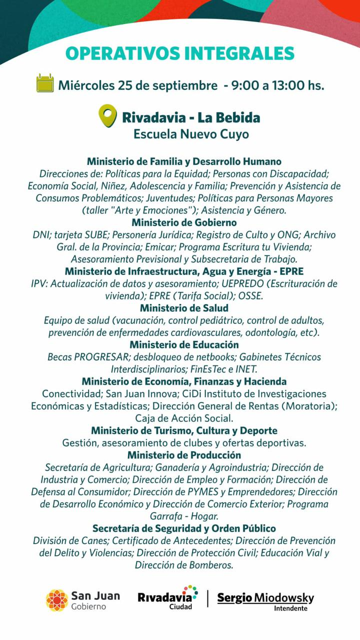 Este operativo integral busca brindar una atención integral a los ciudadanos de Rivadavia, abarcando desde servicios básicos hasta oportunidades de desarrollo económico y social.