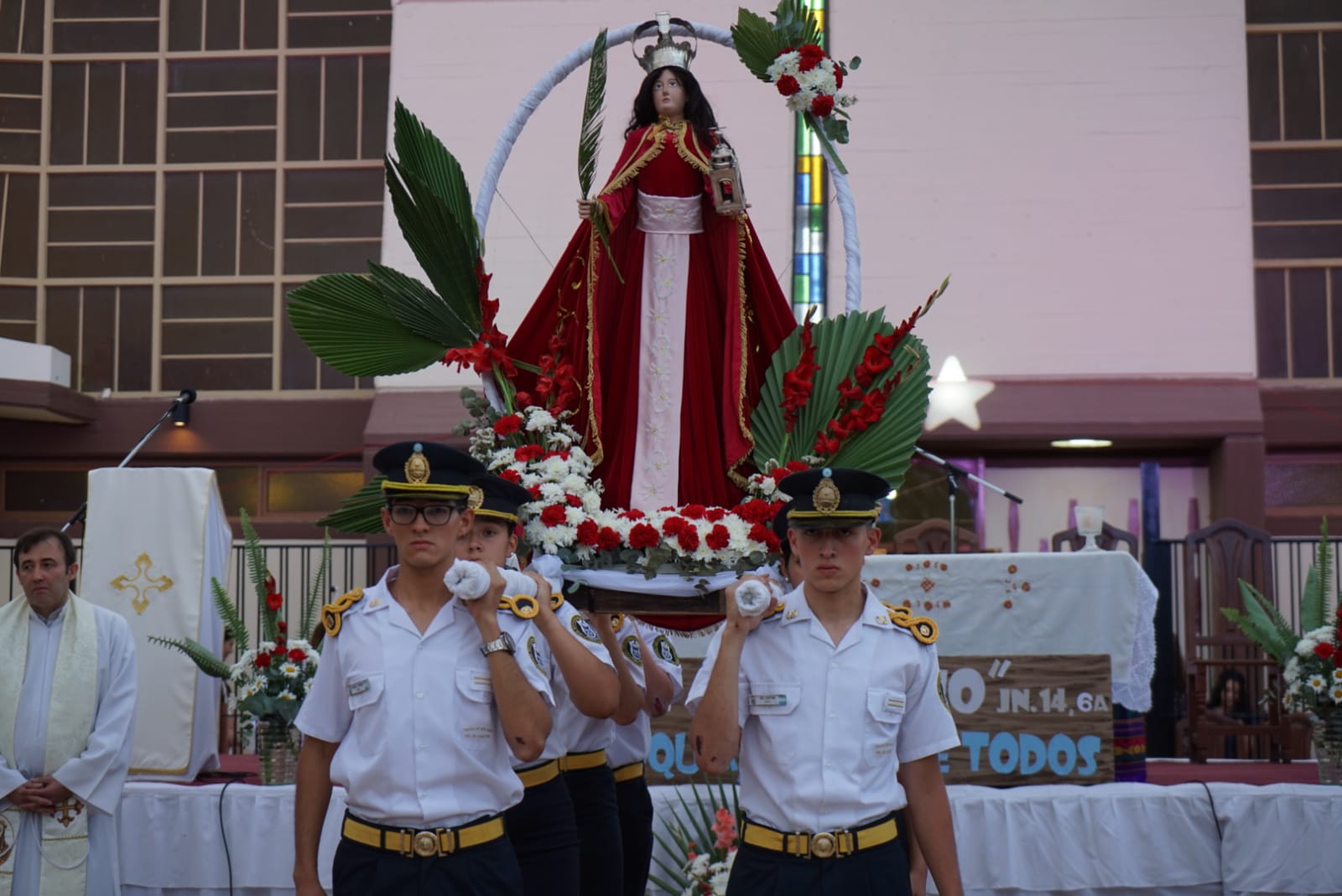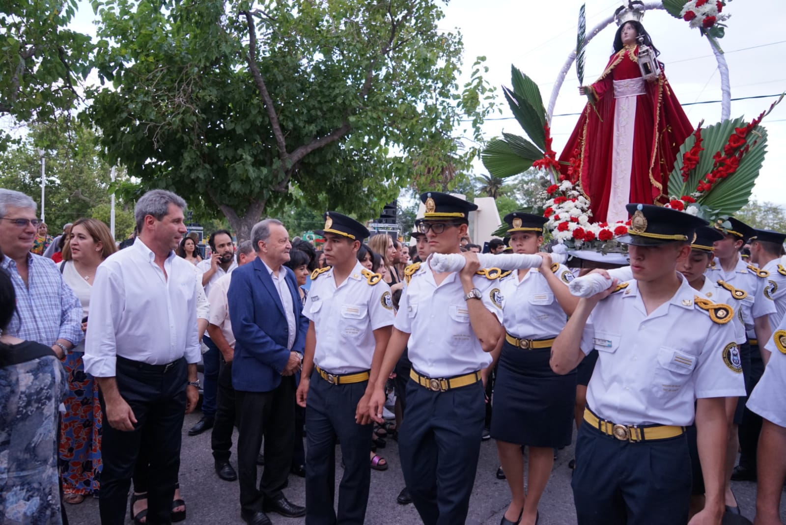 Como cada año, el gobernador y el intendente asistieron al cierre de la novena que llevó adelante la Parroquia de Santa Bárbara. La actividad litúrgica, que este año se dio bajo el lema “Yo soy el camino”, se inició con la procesión de la santa que recorrió calles de la Villa Aberastain durante más de media hora de caminata. Luego, al retornar a la iglesia el obispo, Gustavo Larrazabal, presidió la santa misa que contó con la presencia de miles de personas.