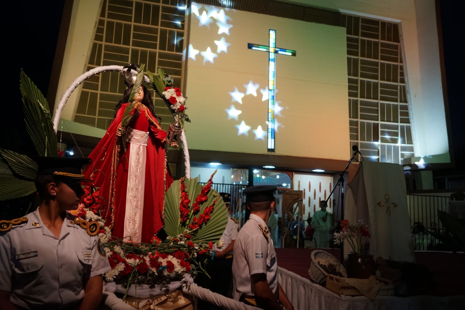 Finalizada la actividad parroquial, la atención se trasladó al escenario montado en Plaza La Libertad para encarar la tercera y última noche de espectáculos de la edición 2022 de la Fiesta de Santa Bárbara.