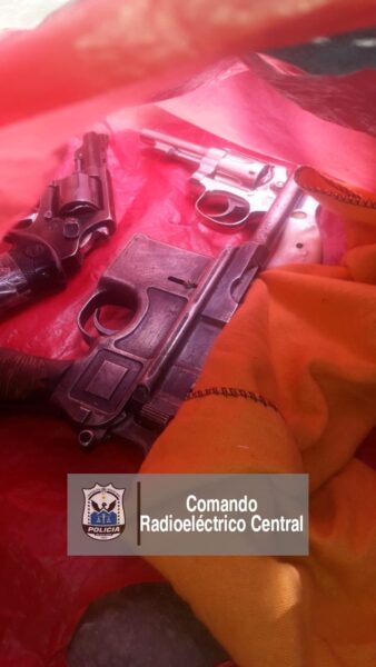 Informa personal policial de División Comando Radioeléctrico Central, que fueron comisionados al interior del B° Corrientes, dpto Capital. En el lugar habría una persona realizando disparos con un arma de fuego. Por tal motivo se procede a realizar recorridas por la zona antes nombrada y se logra la aprehensión de una persona de sexo masculino mayor de edad de apellido Bravo y el secuestro de tres armas de fuego. Se hizo presente ayte fiscal de turno, quien lo vincula a legajo caratulado TENENCIA ILEGAL DE ARMA Y PORTACION.